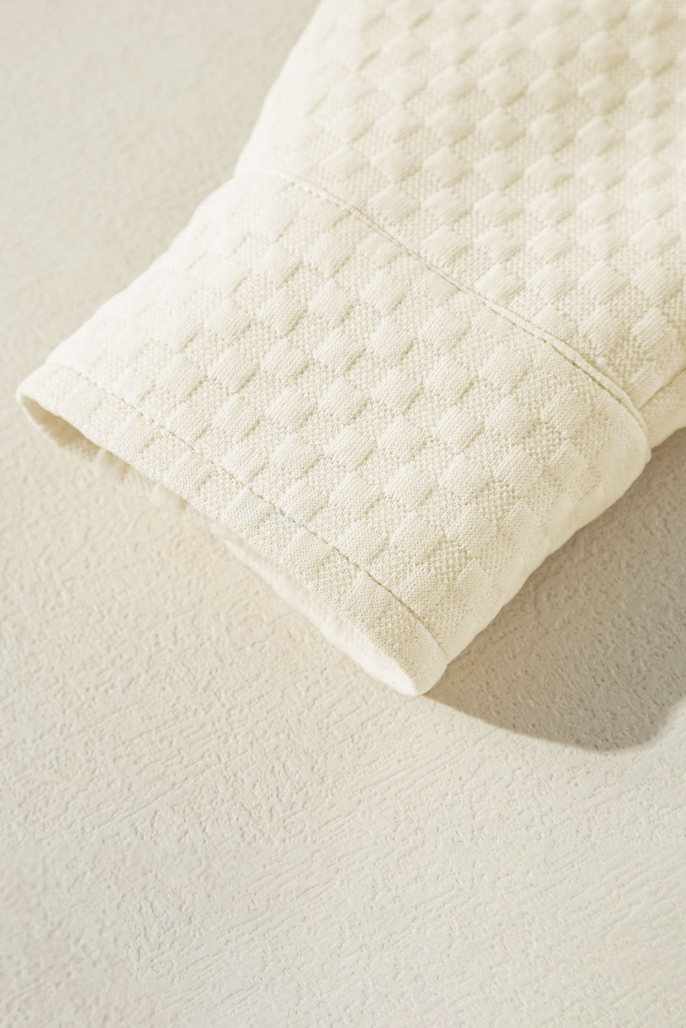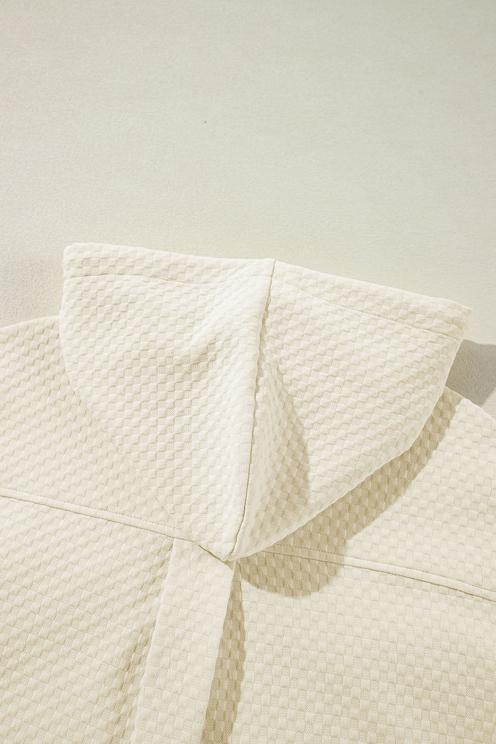 Apricot Textured Buttoned Neckline Side Pockets Hoodie