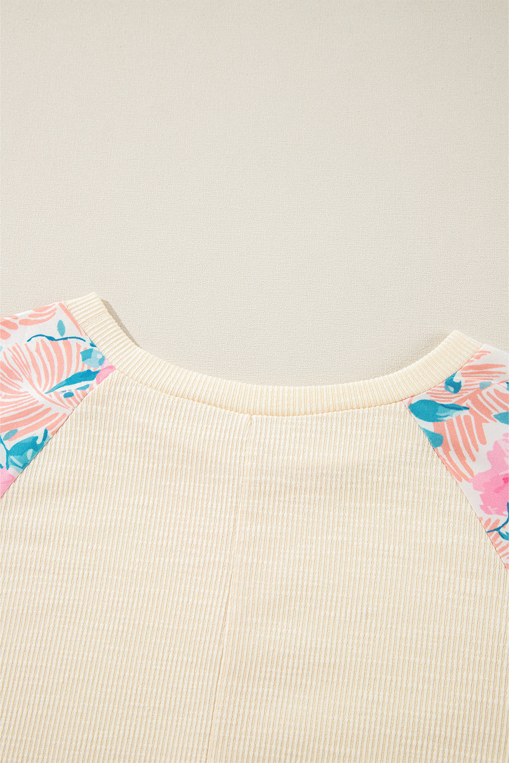 Apricot Textured Floral Patchwork Balloon Sleeve Blouse