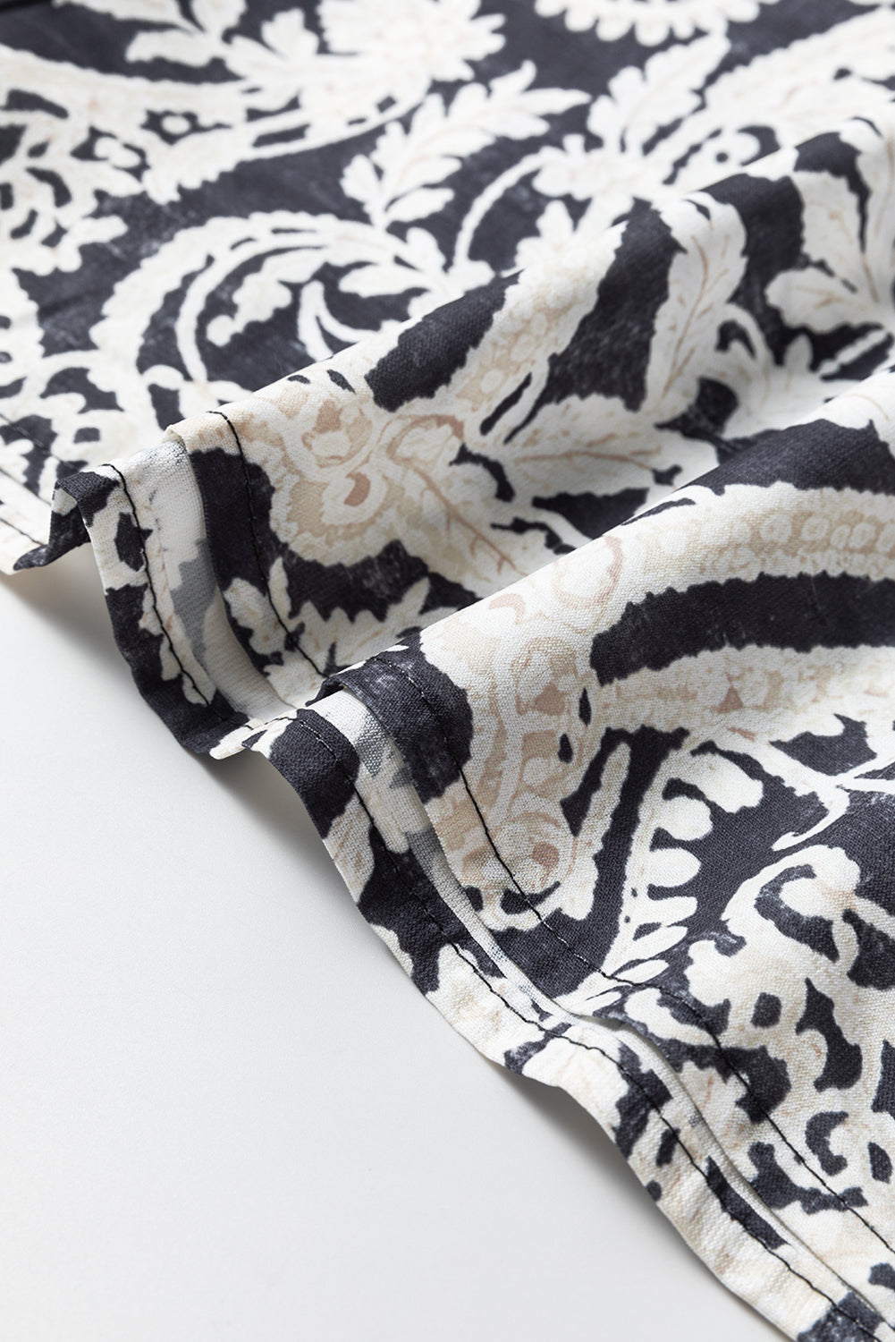 Black Bohemian Printed Drawstring Waist Wide Leg Pants