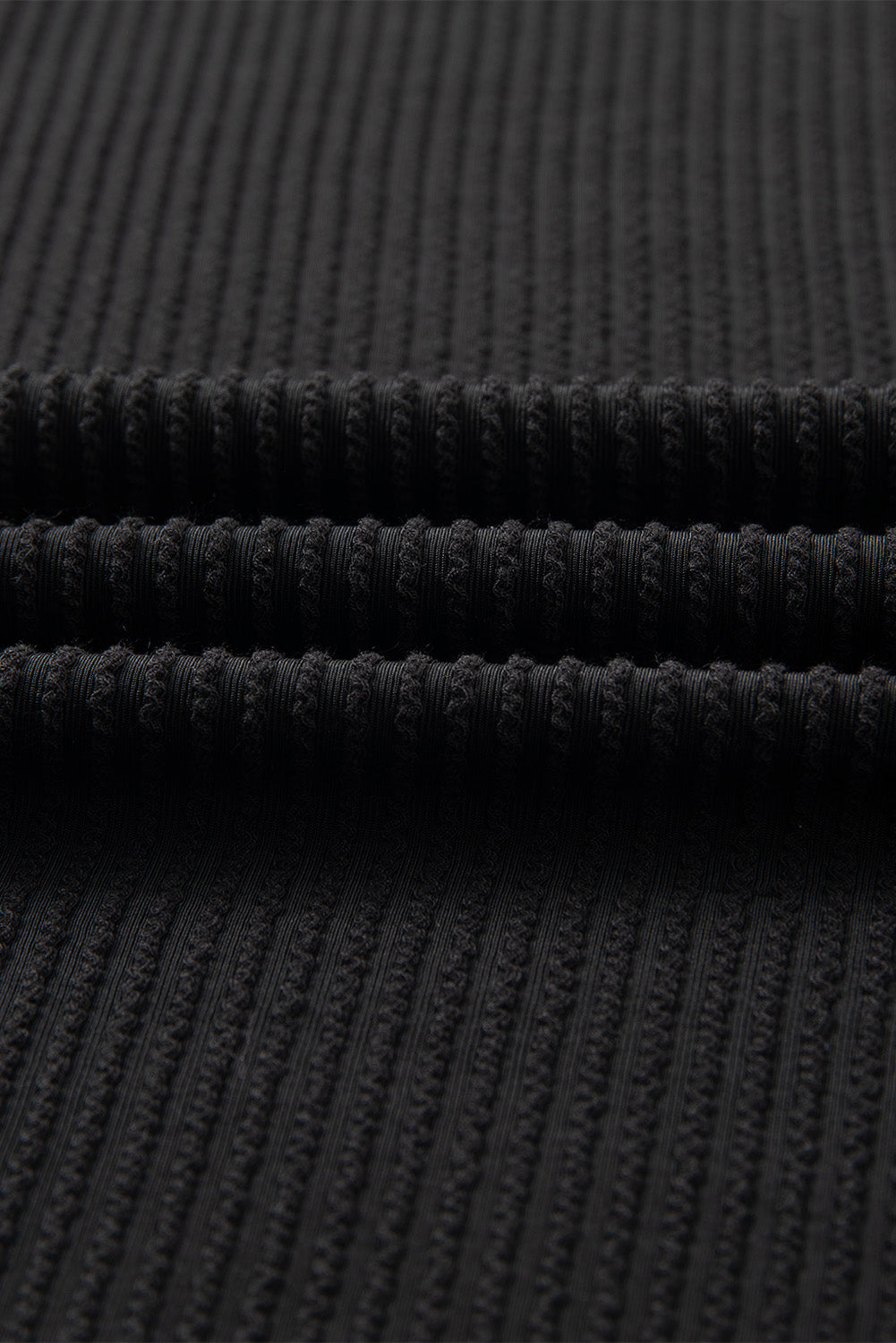 Black Corded Sleeveless Top and Pocketed Shorts Set