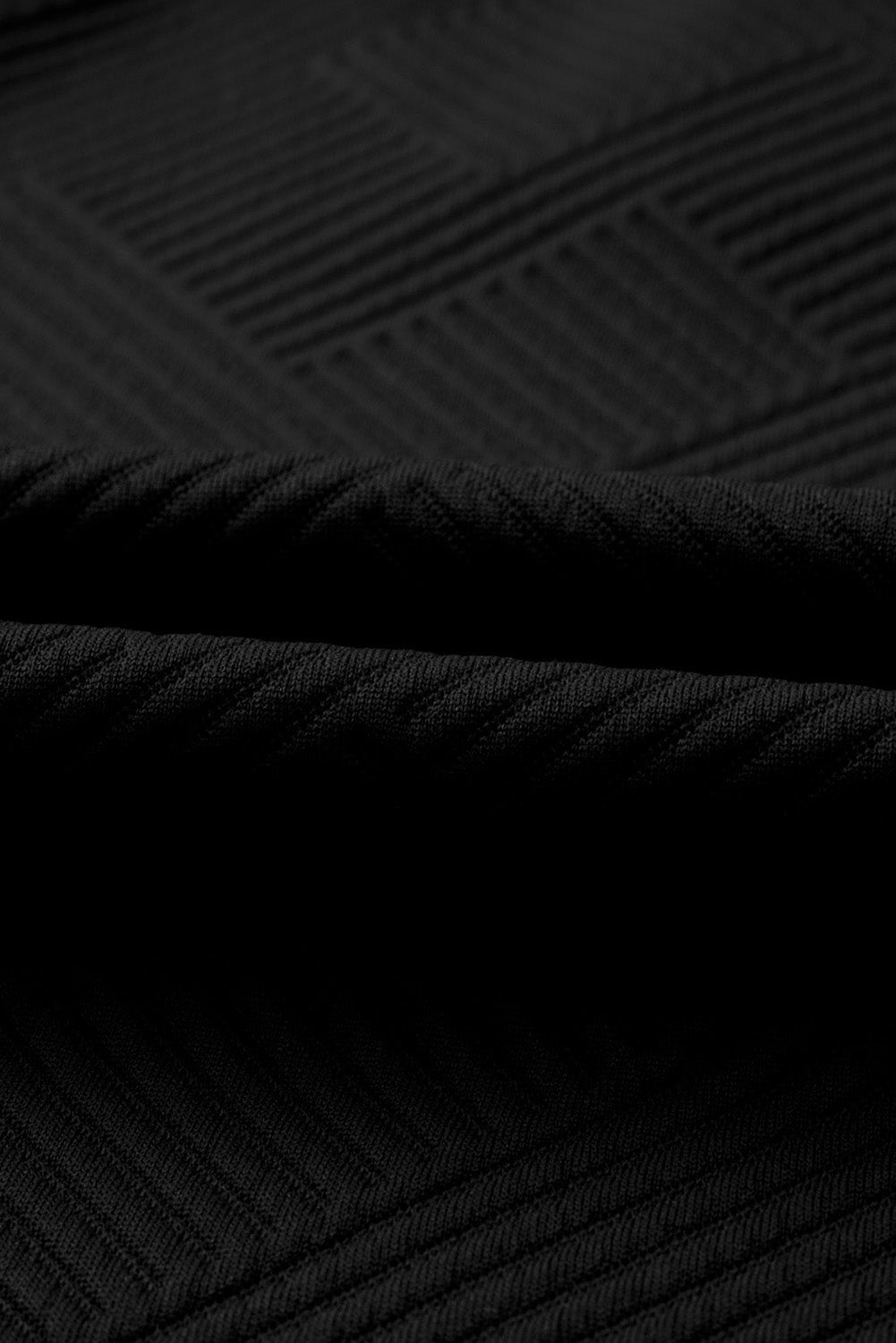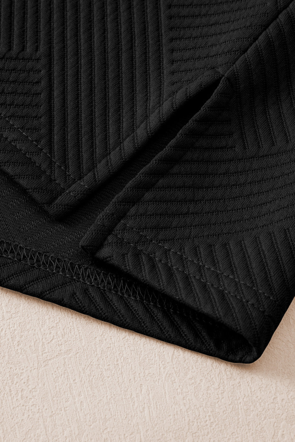 Black Solid Textured Collared V Neck Top and Wide Leg Pants Set