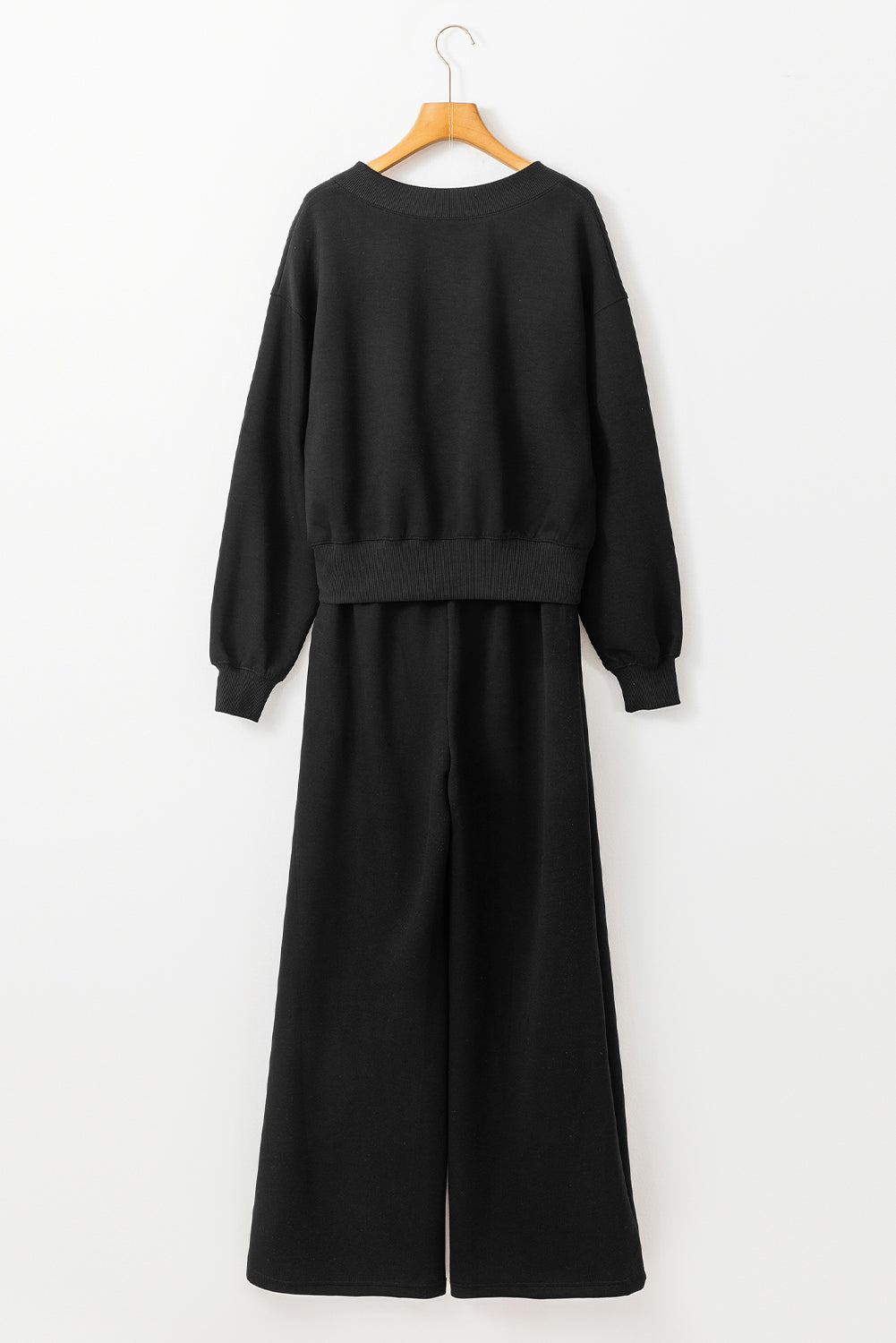 Black V Neck Cropped Seamed High Waist Sports Wear