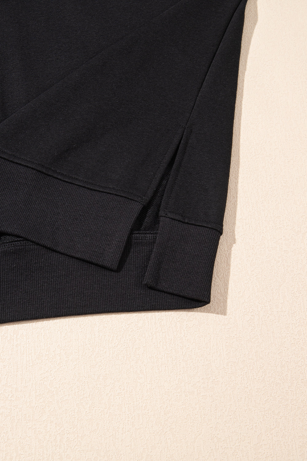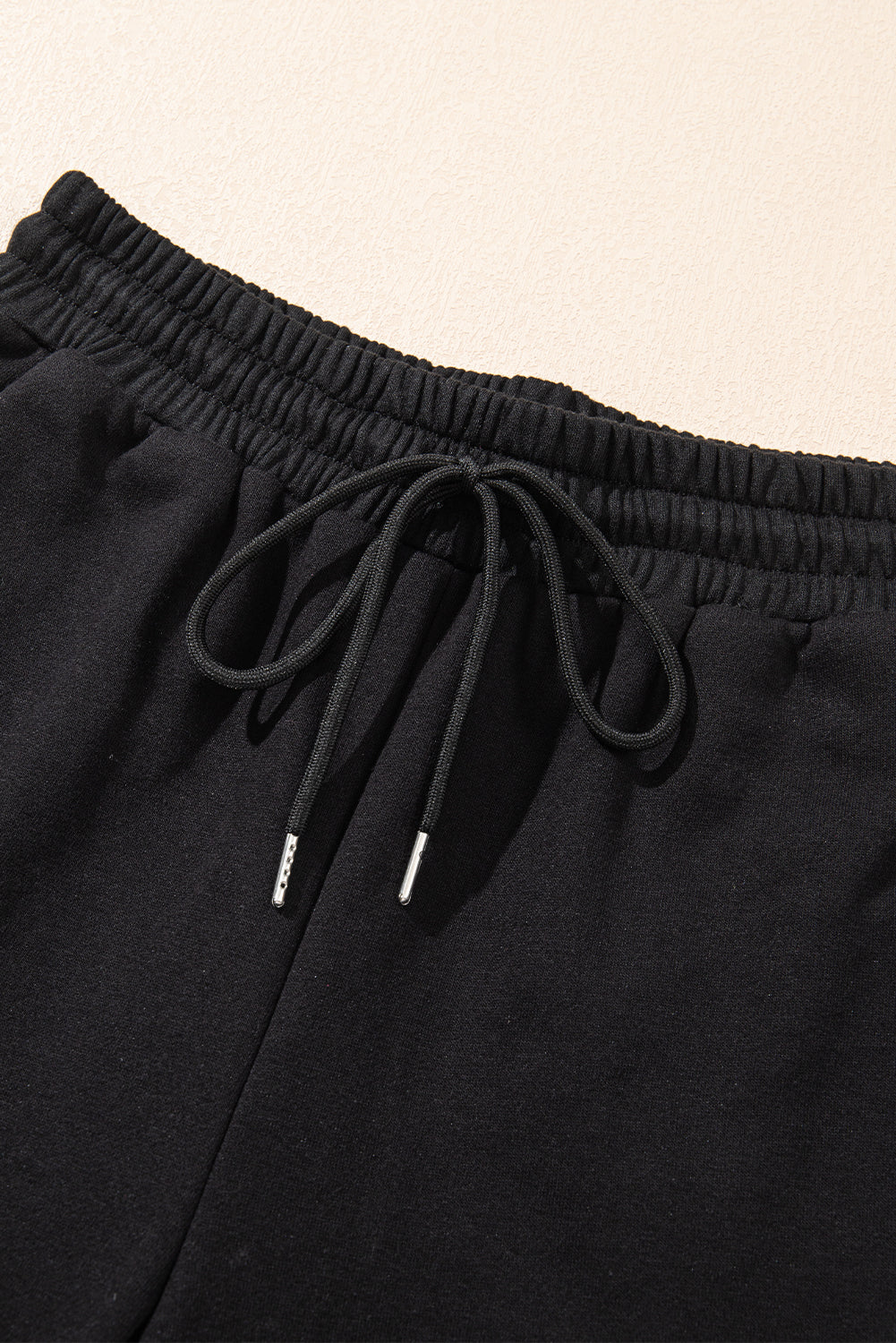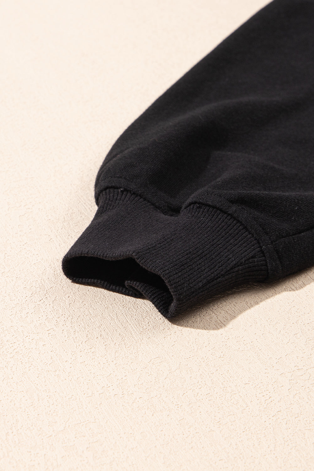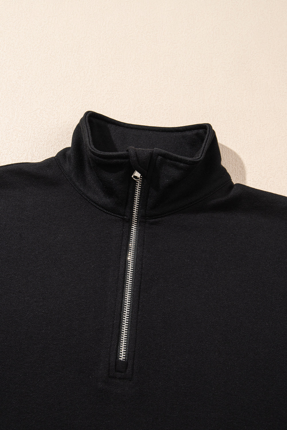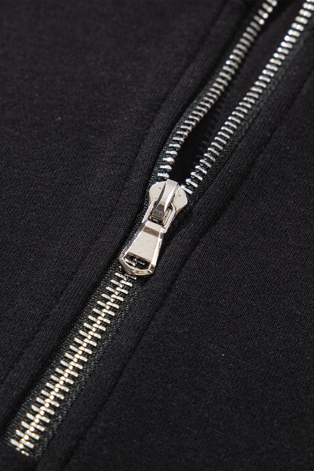 Black Zipper Stand Neck Top and Wide Leg Pants Set
