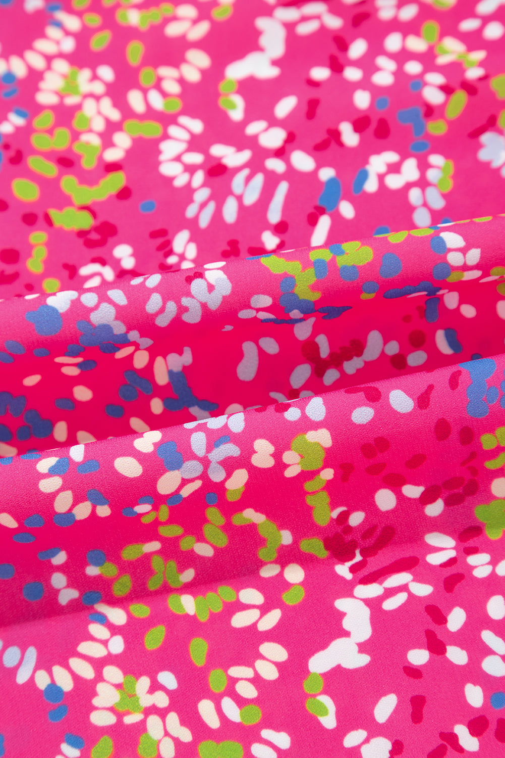 Bonbon Abstract Print Collared V Neck Babydoll Blouse