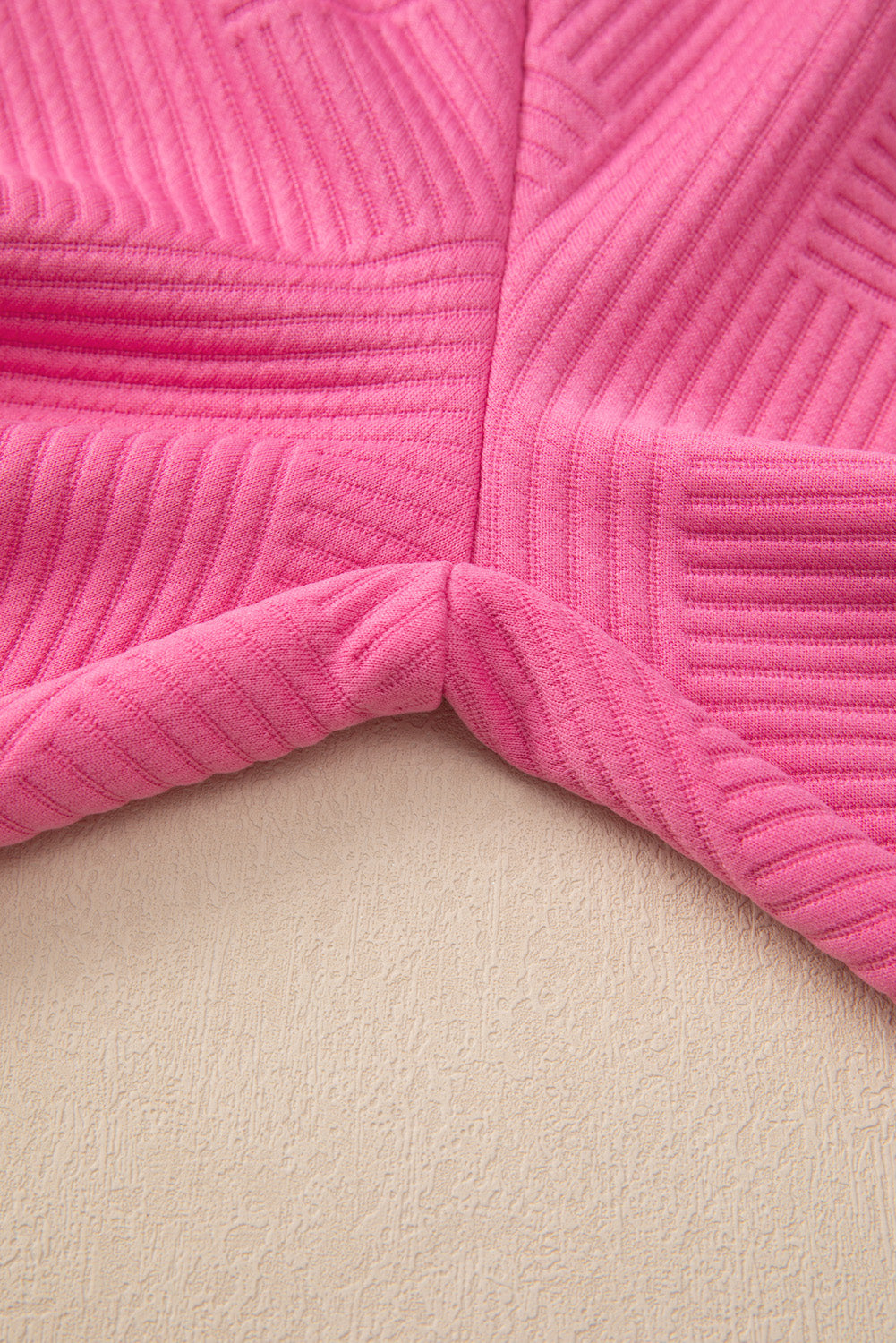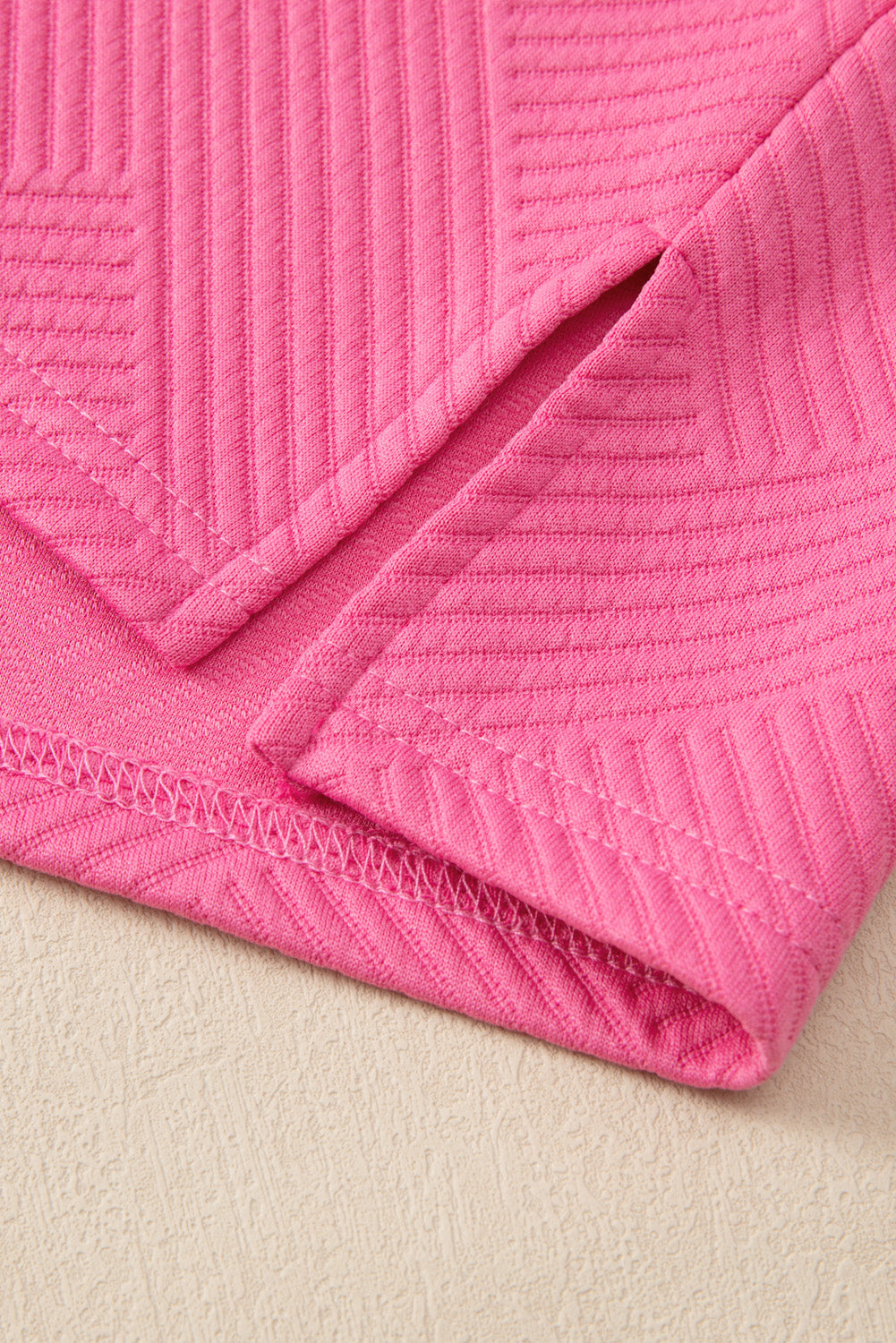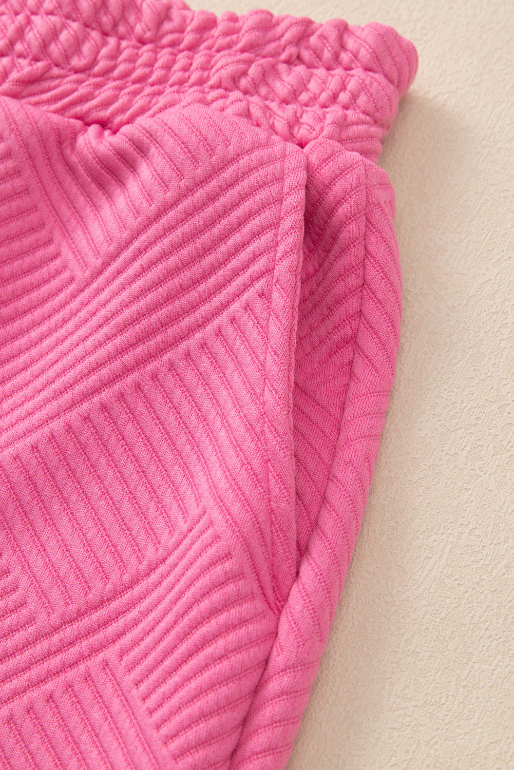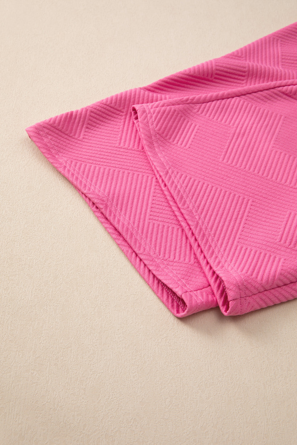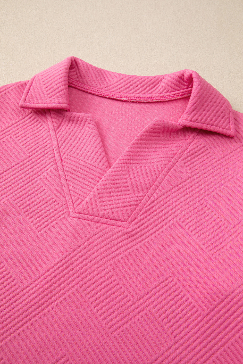 Bonbon Solid Textured Collared V Neck Top and Wide Leg Pants Set