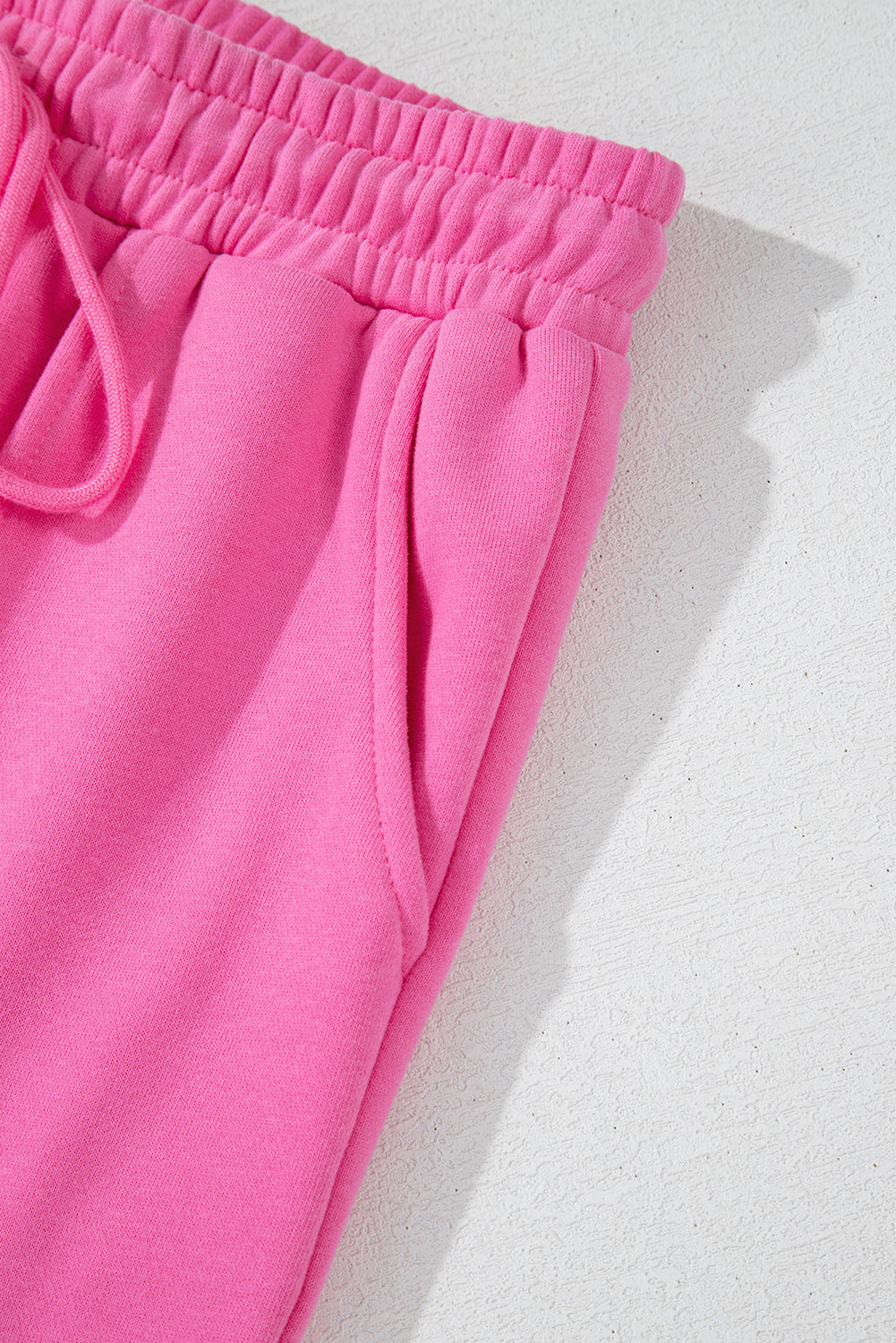 Bright Pink Solid Seamed Zipper Jacket and Drawstring Waist Pants Set