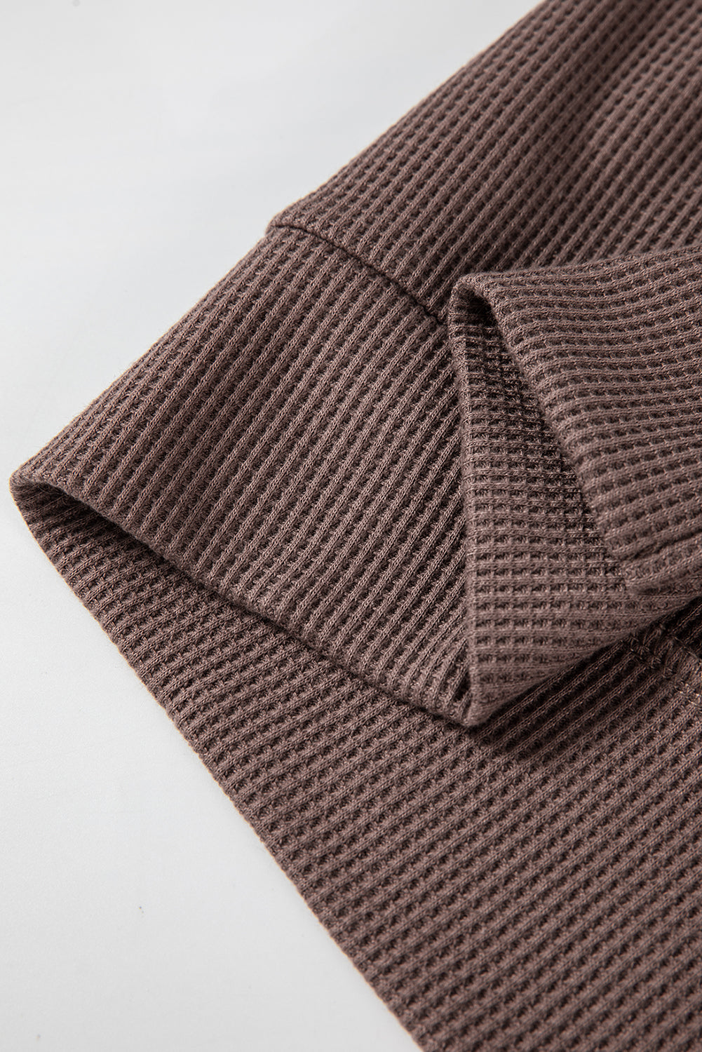 Coffee Waffle Knit Fleece Lined High Low Oversized Hoodie