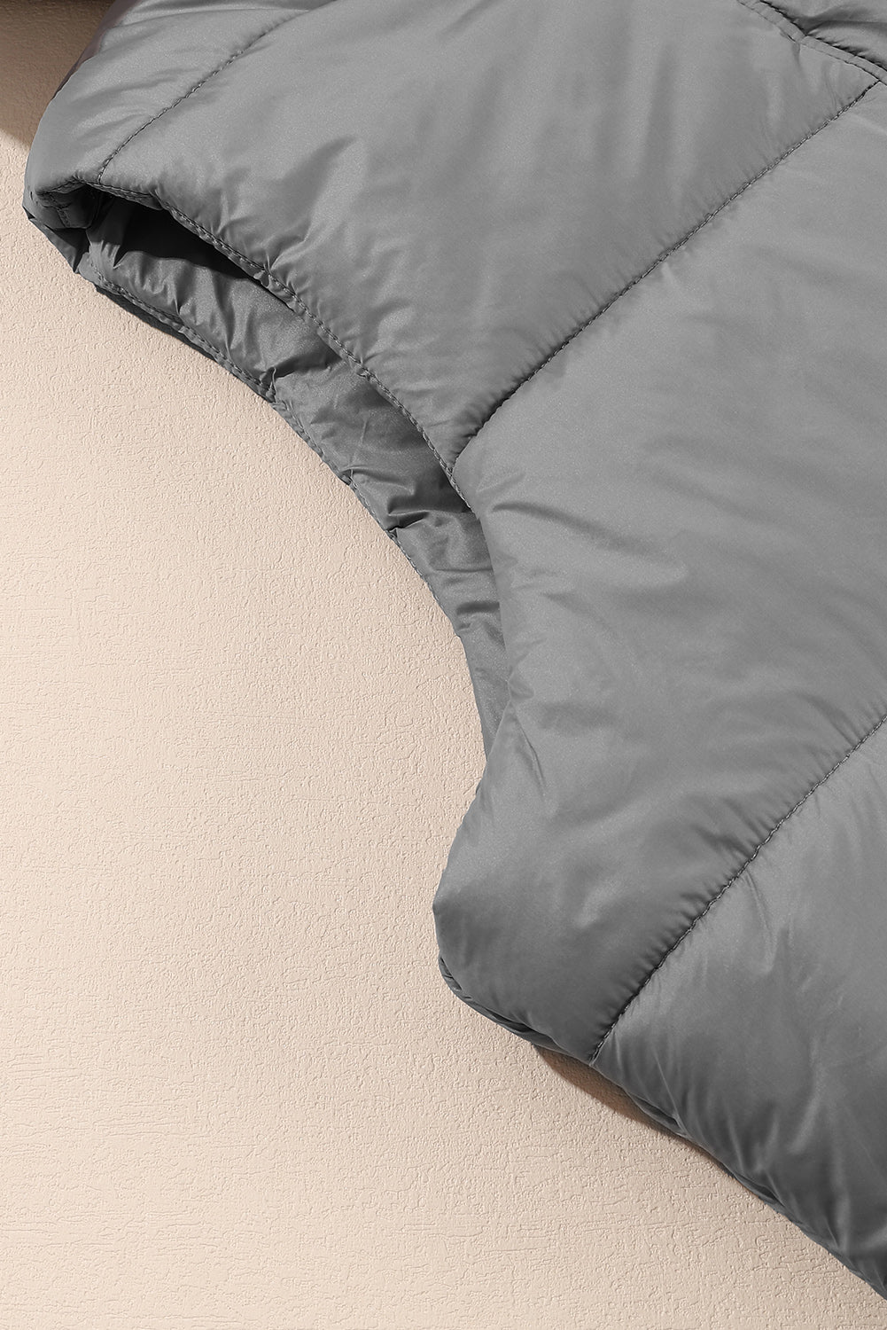 Dark Grey Hooded Long Quilted Vest Coat