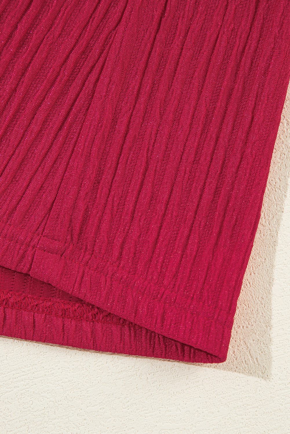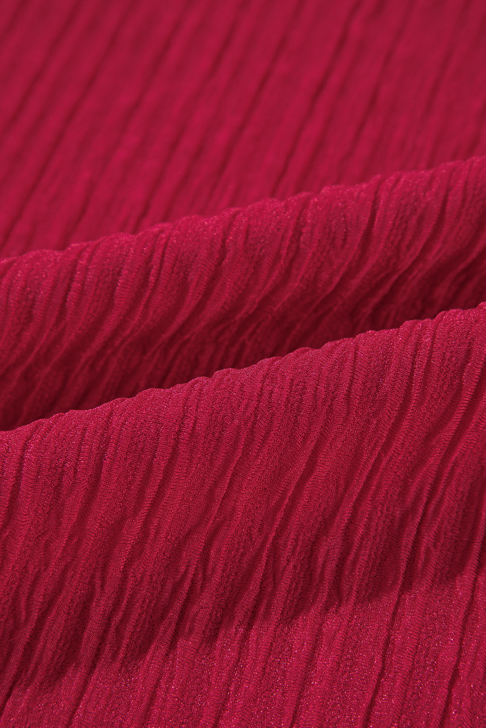 Fiery Red Textured Ruffled Trim V Neck Loose Fit Mini Dress