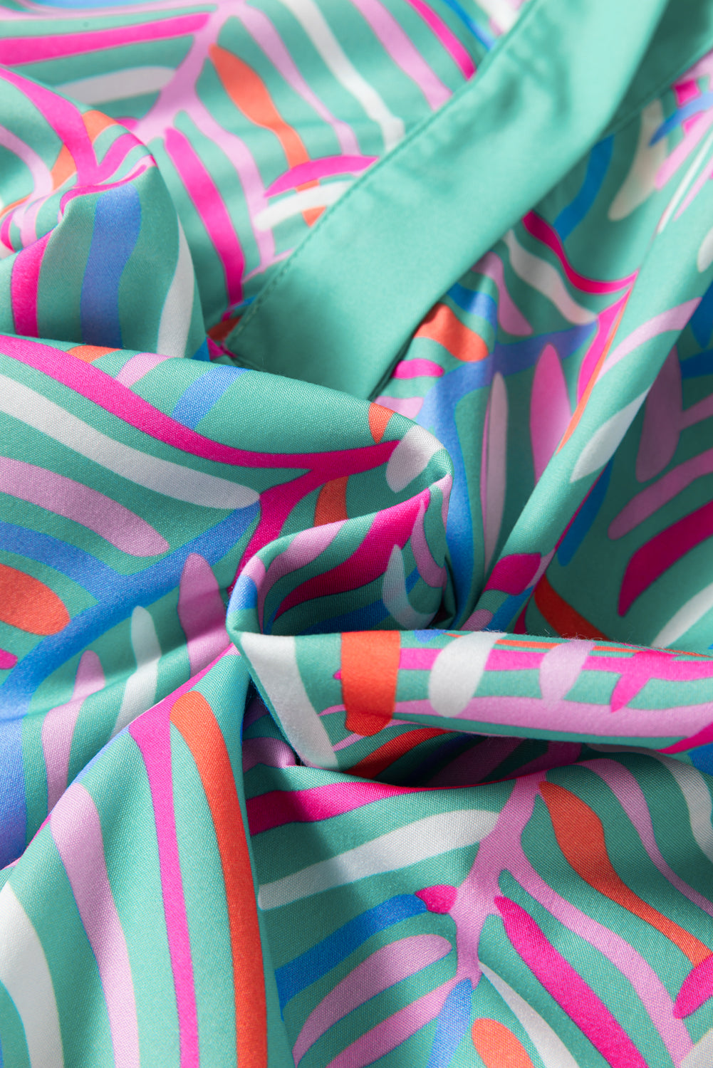 Green Abstract Print Split Neck Bracelet Sleeve Shift Dress