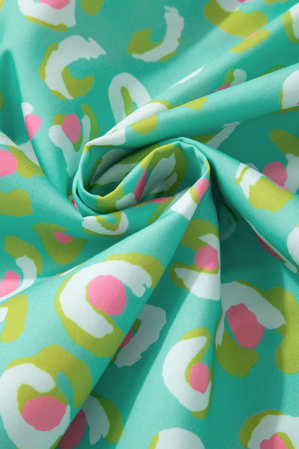 Green Abstract Printed Lace-up Lantern Sleeve Babydoll Blouse