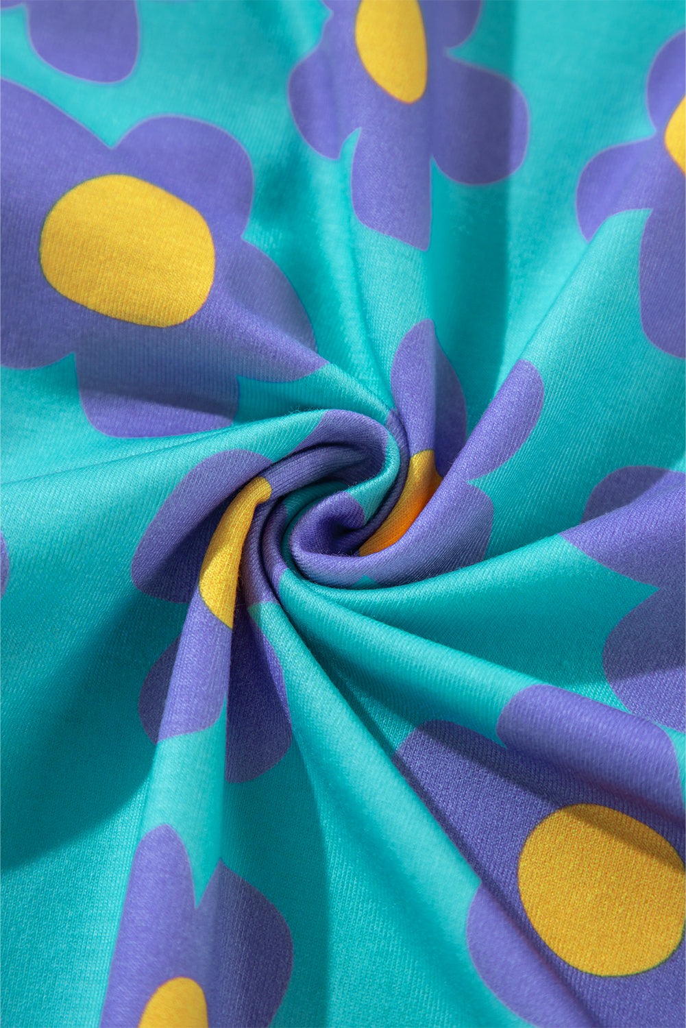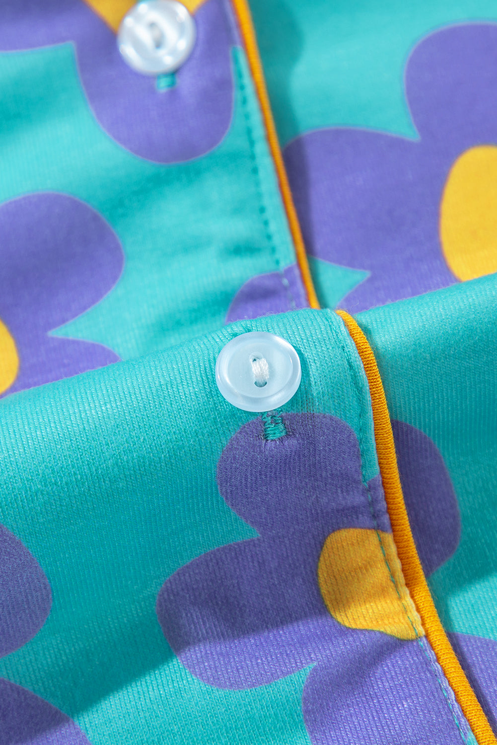 Green Flower Print Long Sleeve Shirt Shorts Pajamas Set