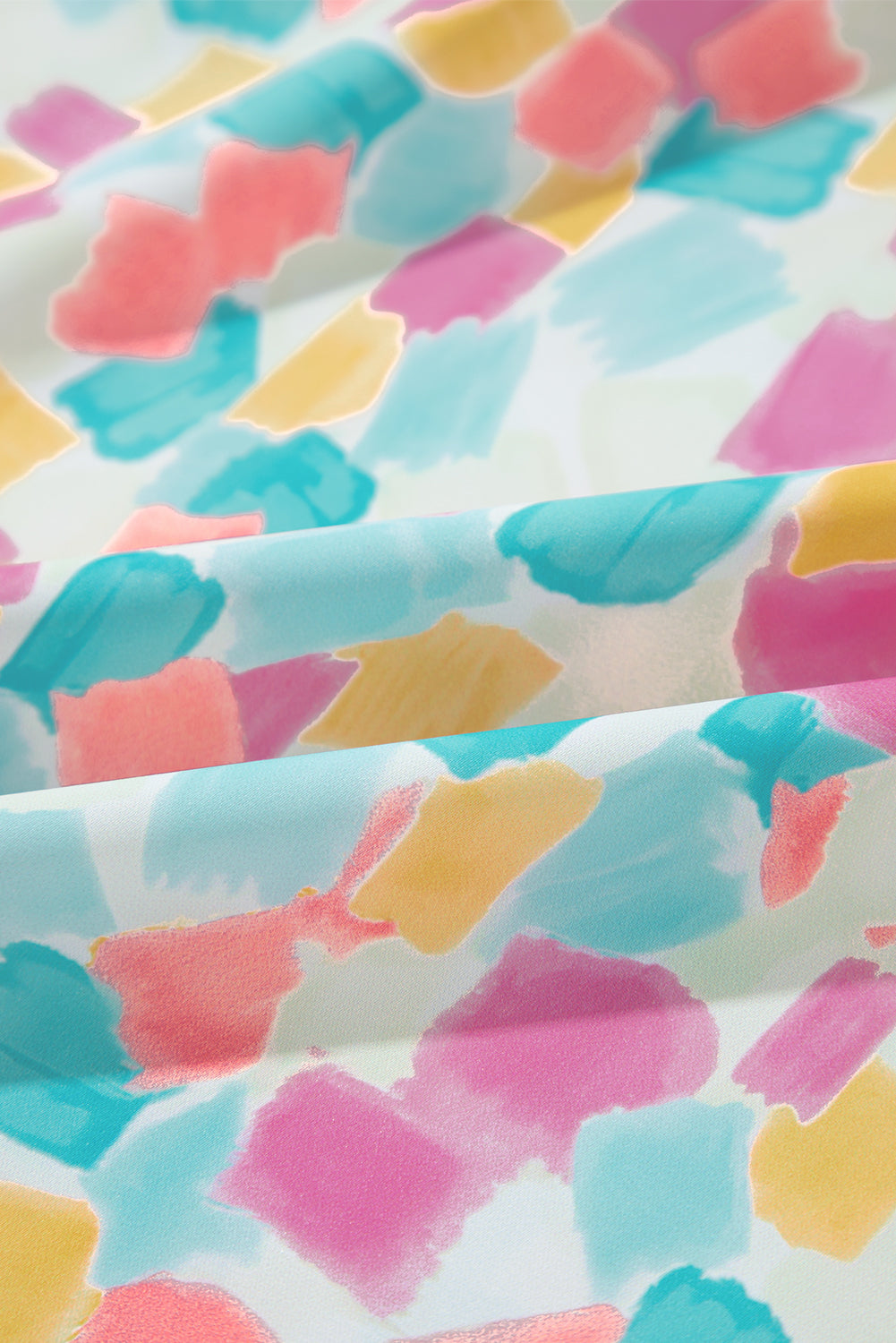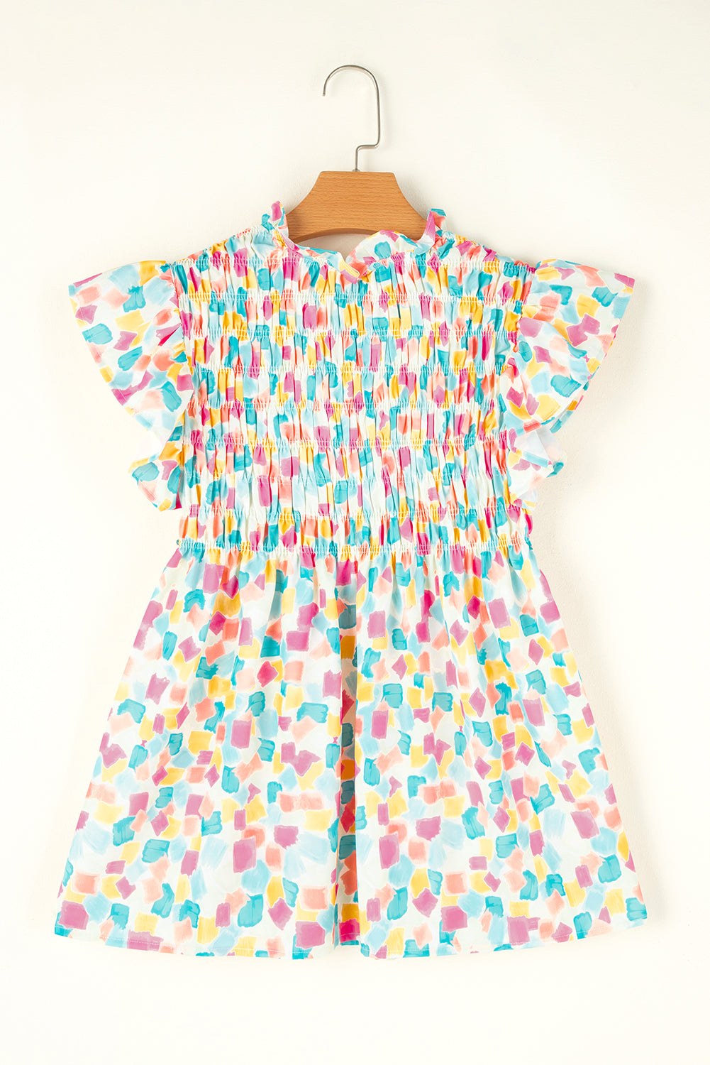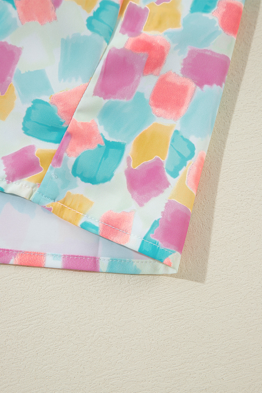 Green Shirred Yoke Ruffled Abstract Printed Blouse
