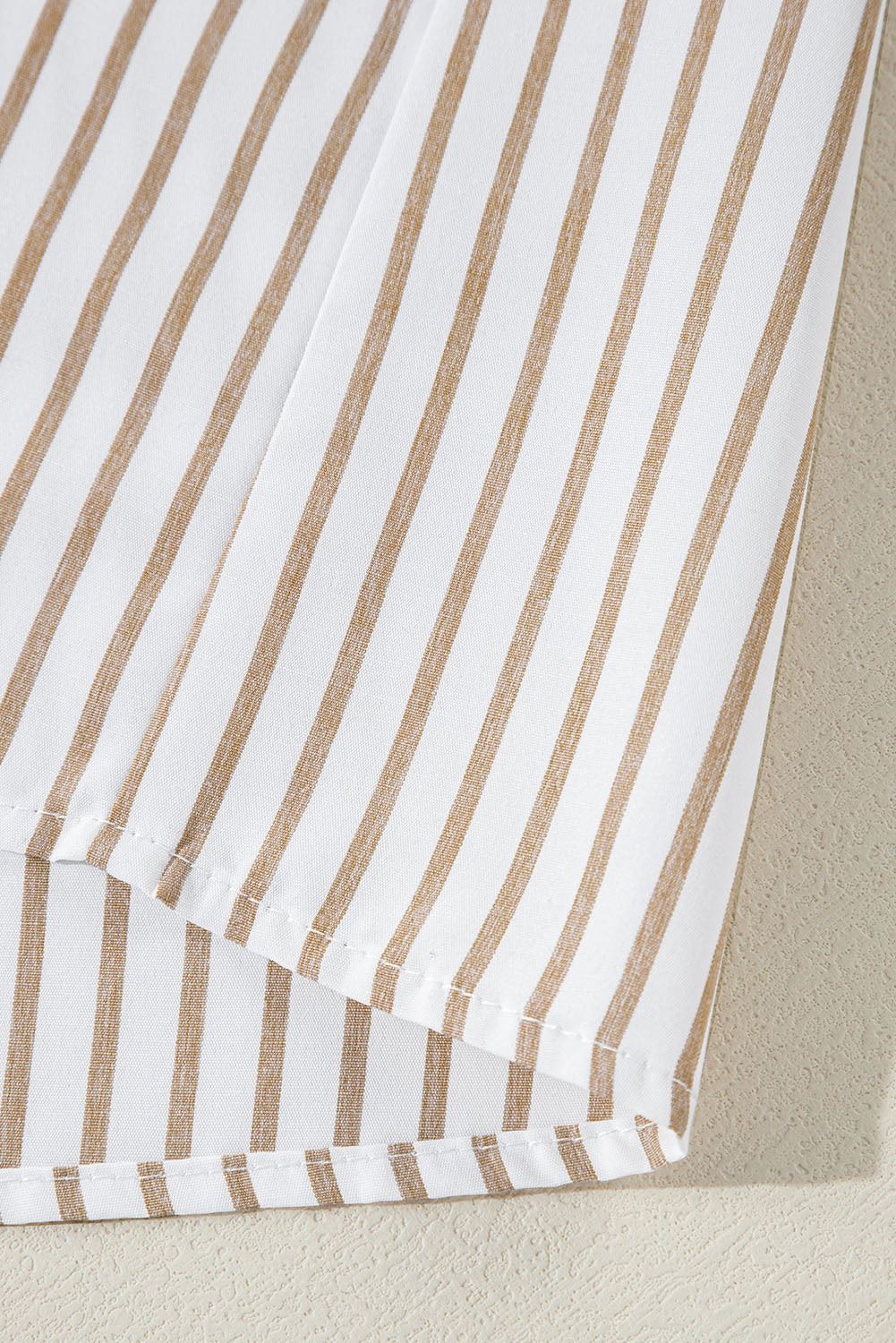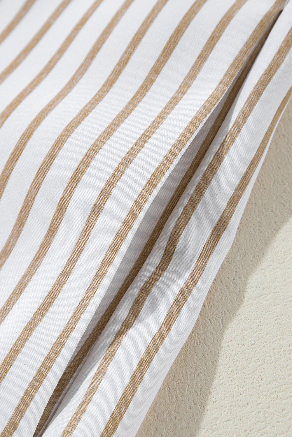 Khaki Stripe Long Sleeve Button Up Mini Shirt Dress