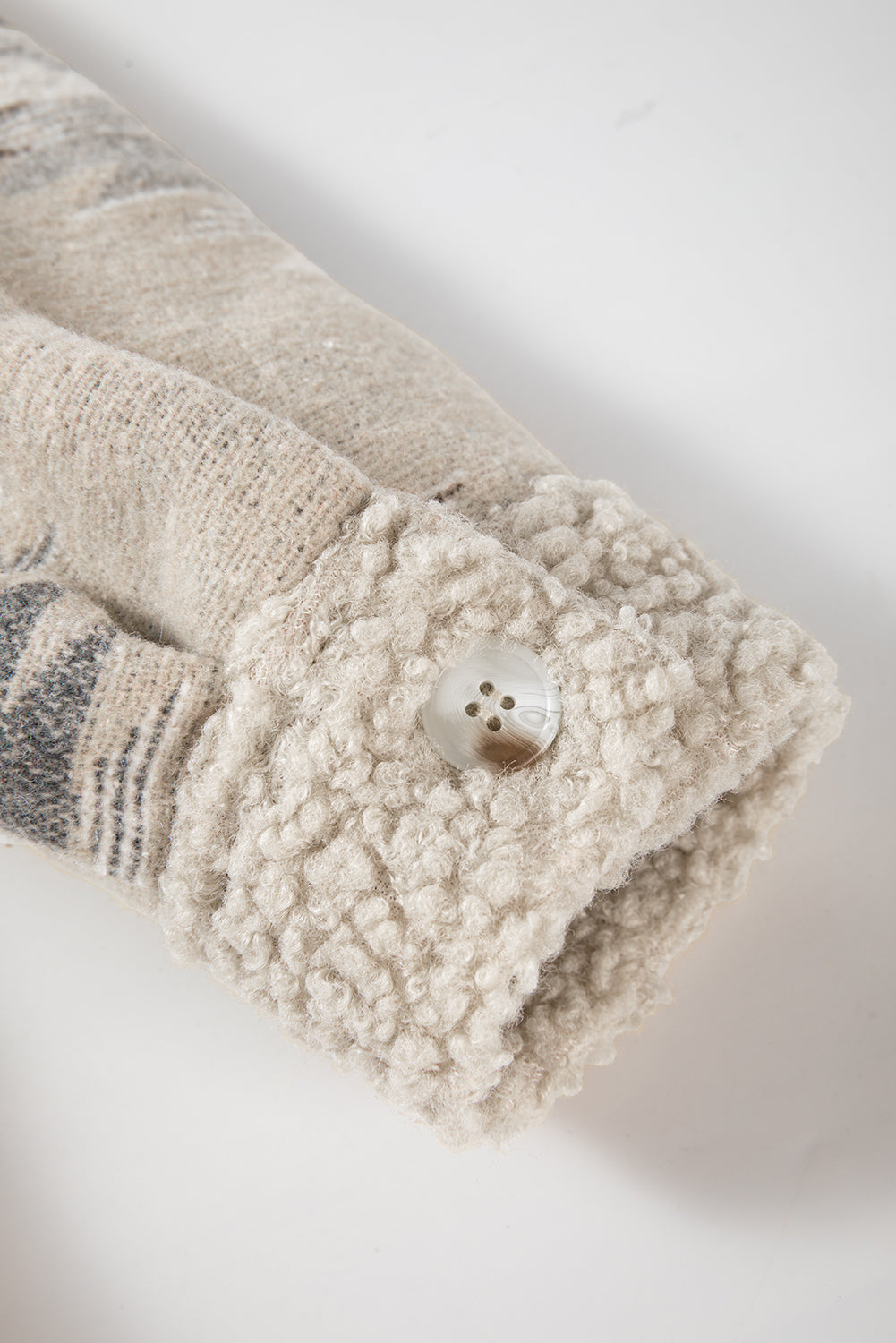 Khaki Western Aztec Print Sherpa Splicing Buttoned Flap Pocket Coat