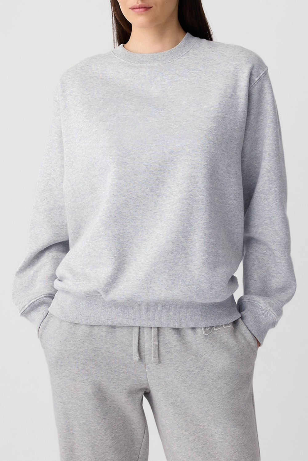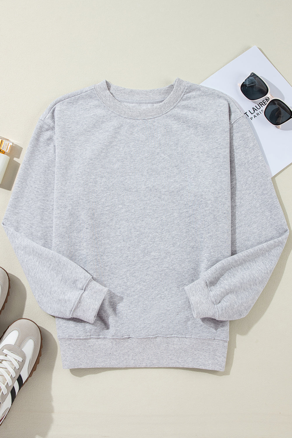 Light Grey Plain Drop Shoulder Crewneck Pullover Sweatshirt