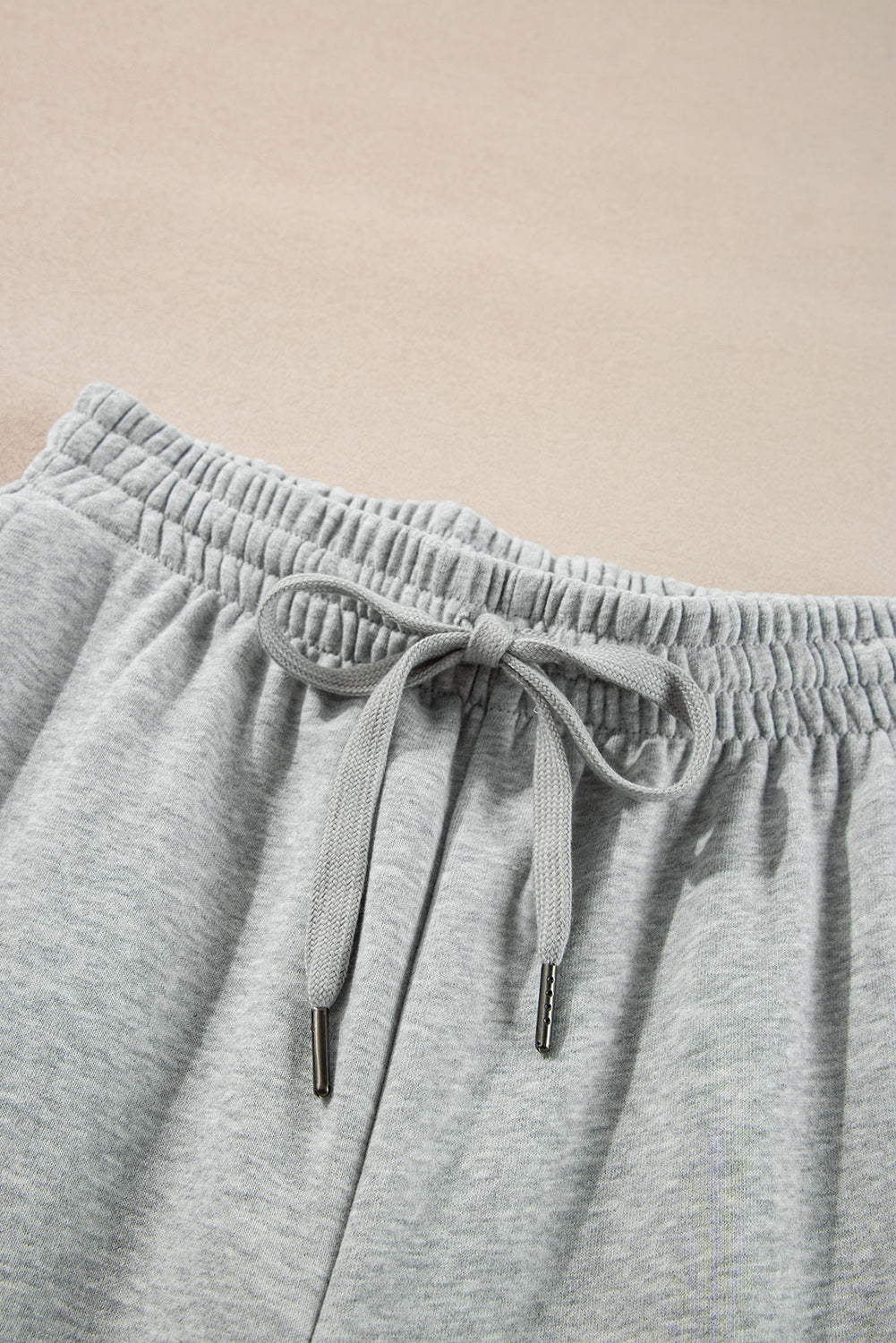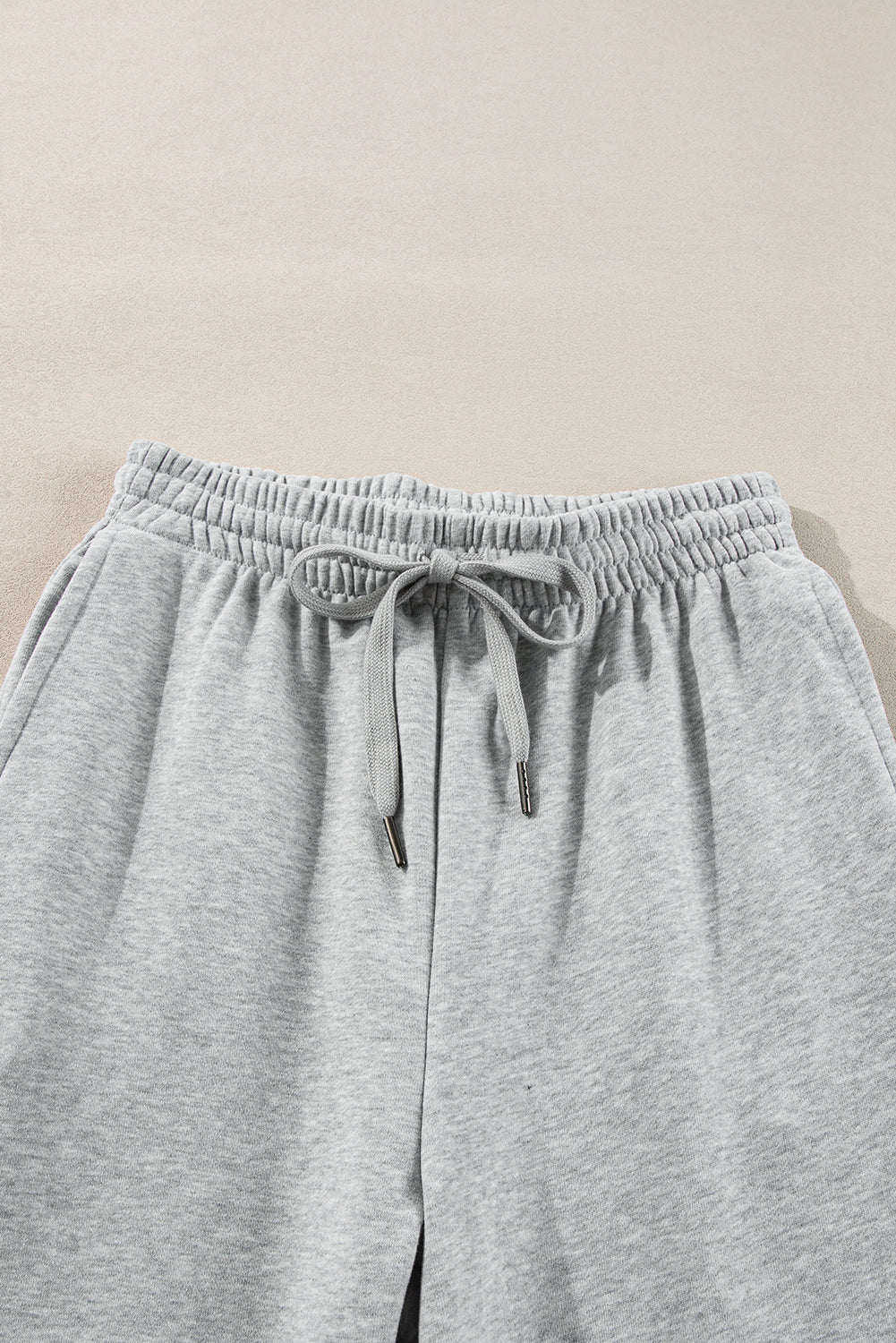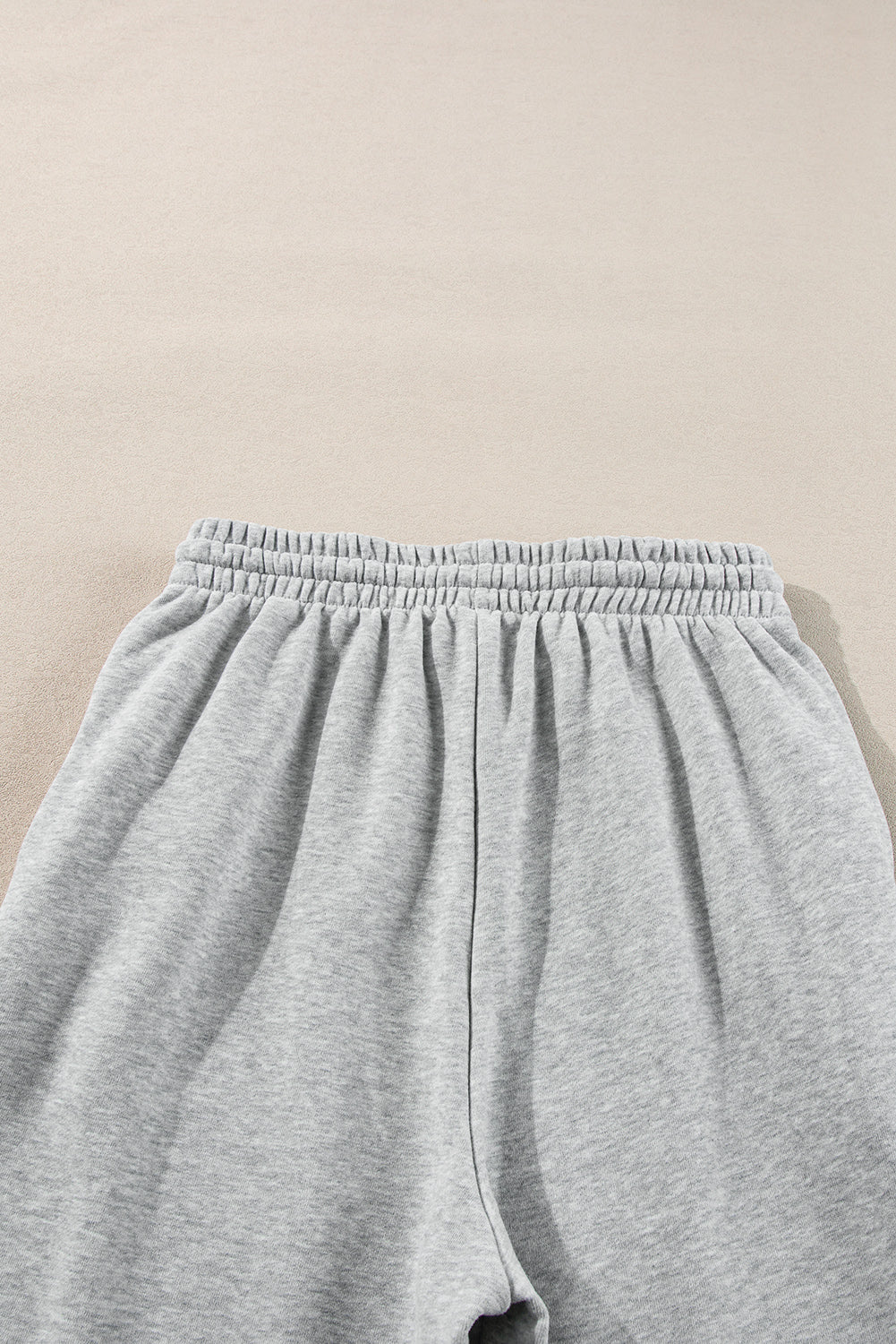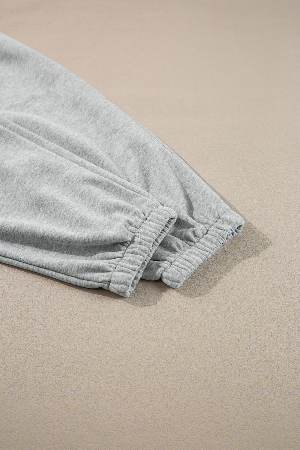 Light Grey Solid Color Fleece Lined Drawstring Waist Joggers