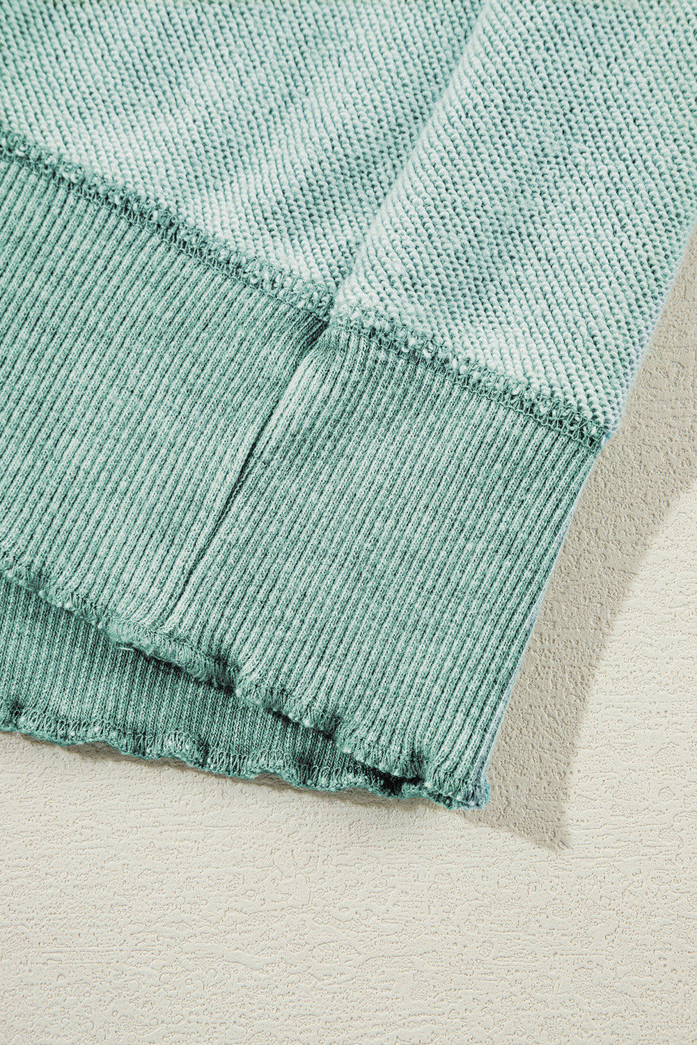 Mineral Blue Waffle Knit Patchwork Exposed Seam Raglan Sweatshirt