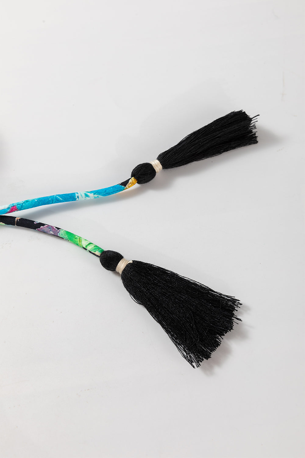 Multicolour Floral Print Bubble Sleeve V Neck Ruffled Blouse