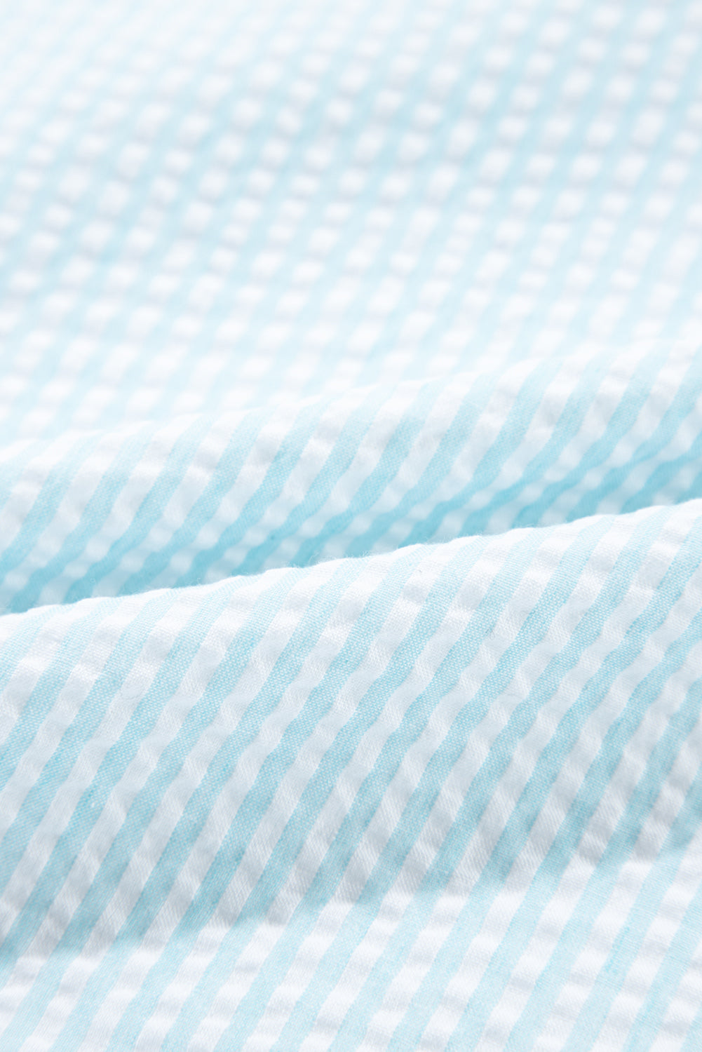 Myosotis Seersucker Ruffled Puff Sleeve Stand Neck Mini Dress