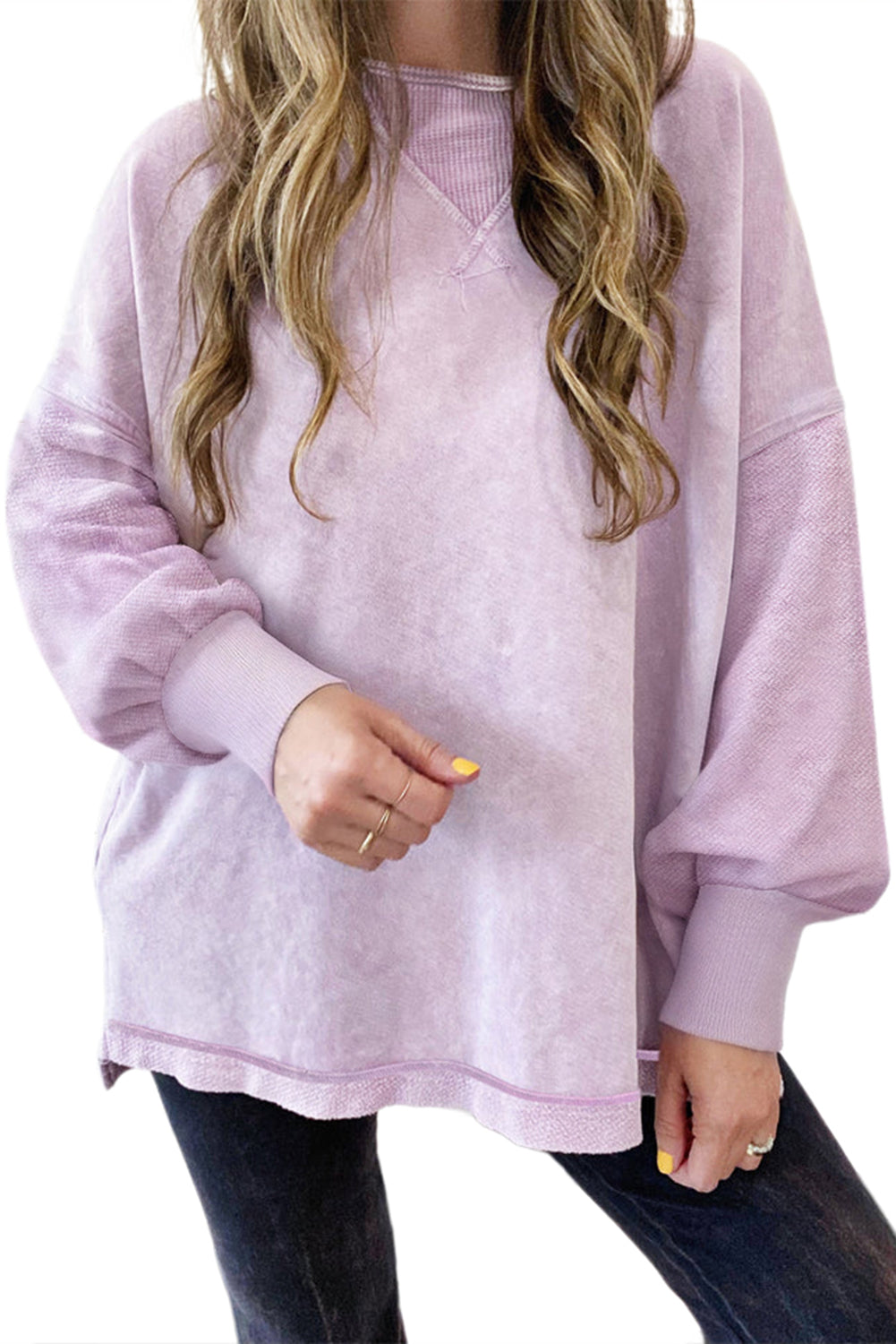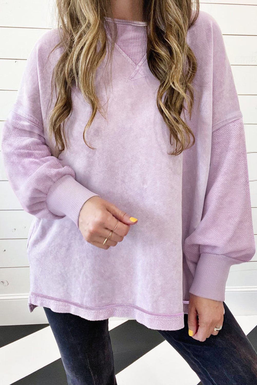 Orchid Petal Mineral Wash Drop Shoulder Pullover Sweatshirt
