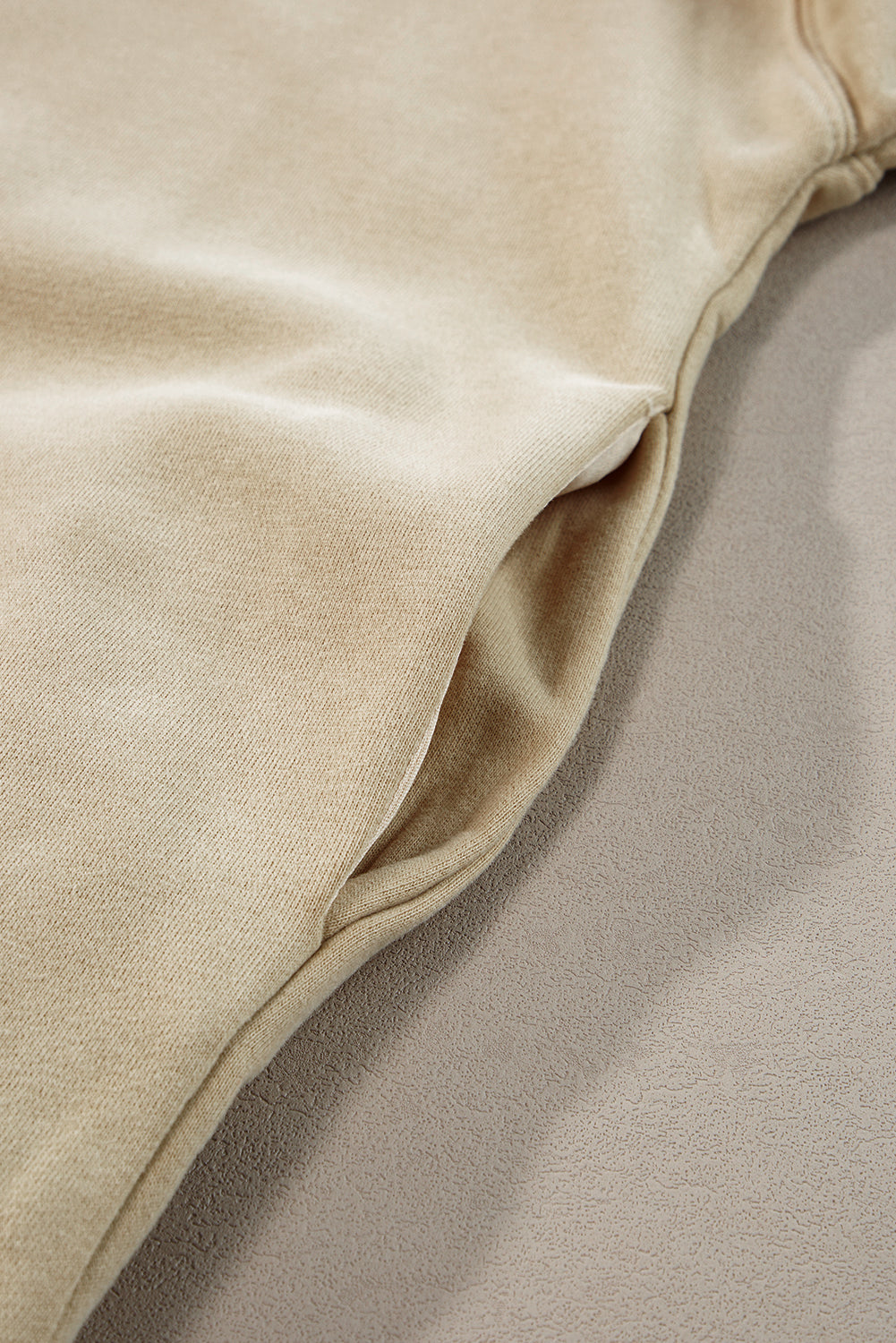 Parchment Solid Fleece Lined Crew Neck Casual Sweatshirt