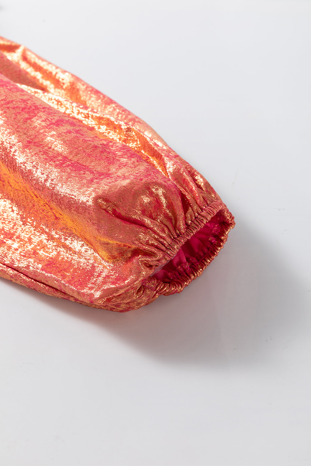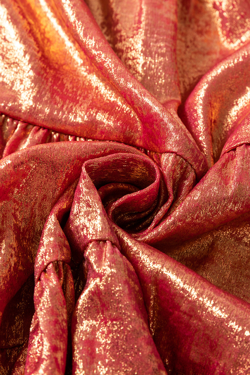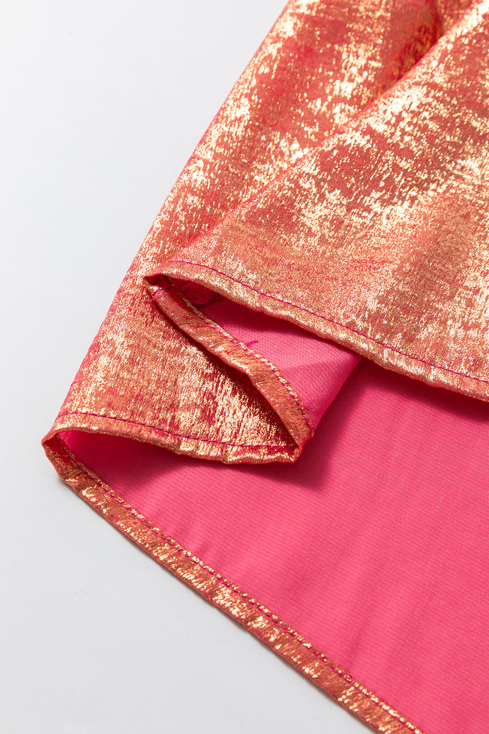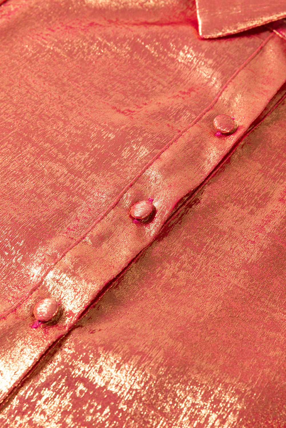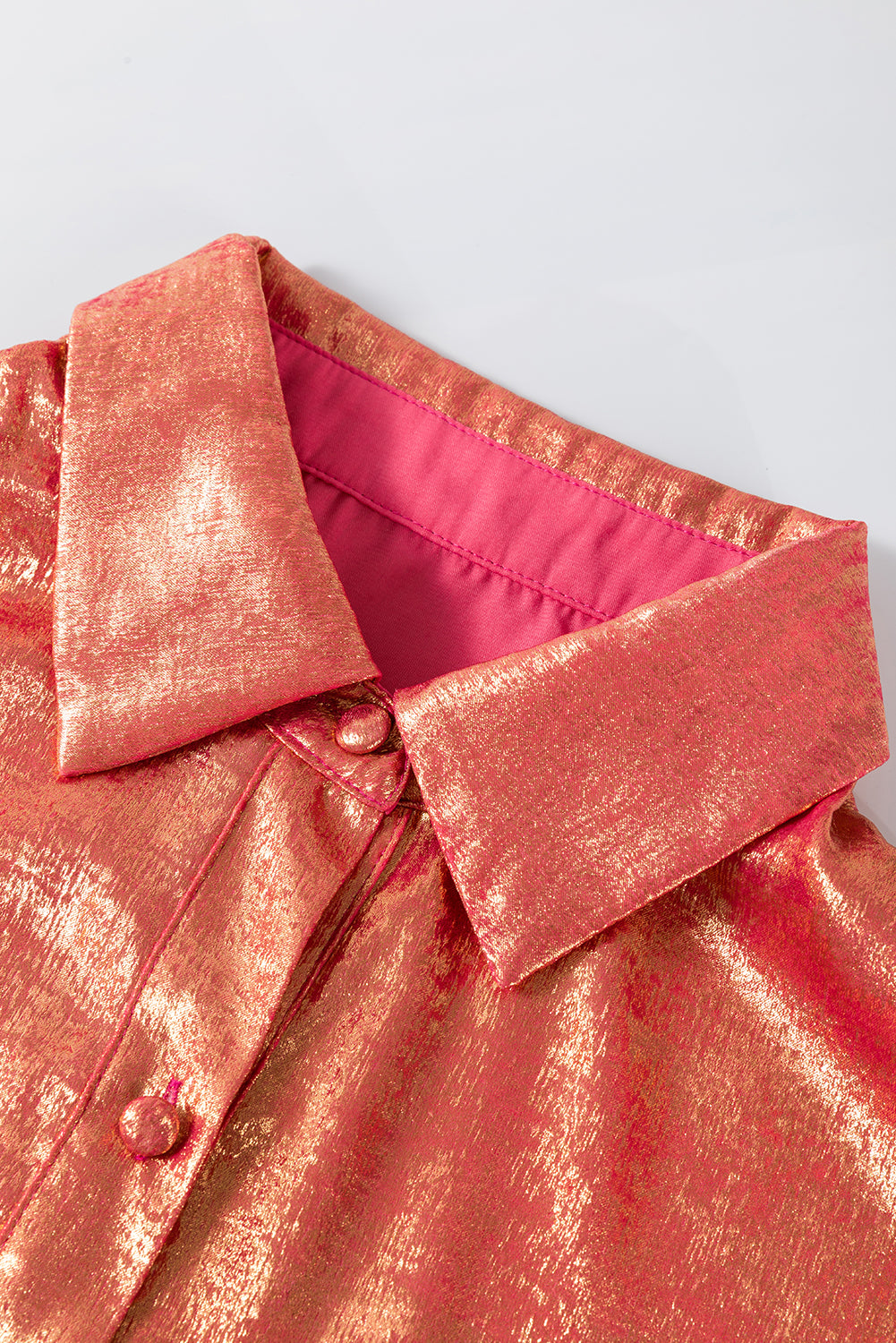 Peach Blossom Metallic Sheen Puff Sleeve Button Up Mini Shirt Dress
