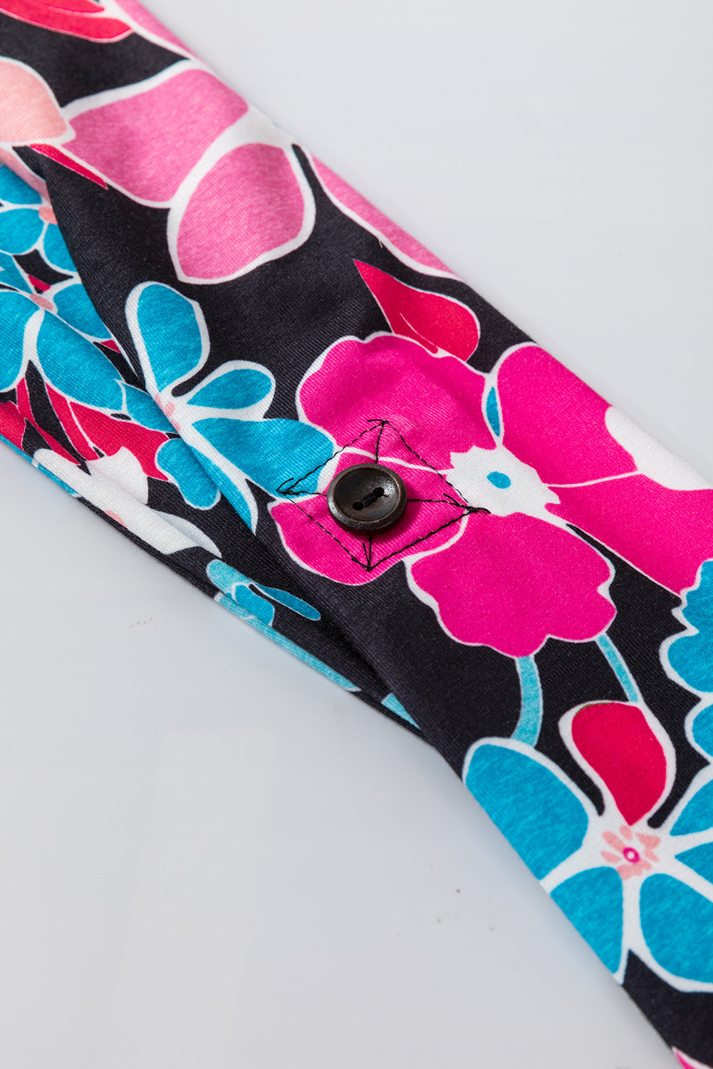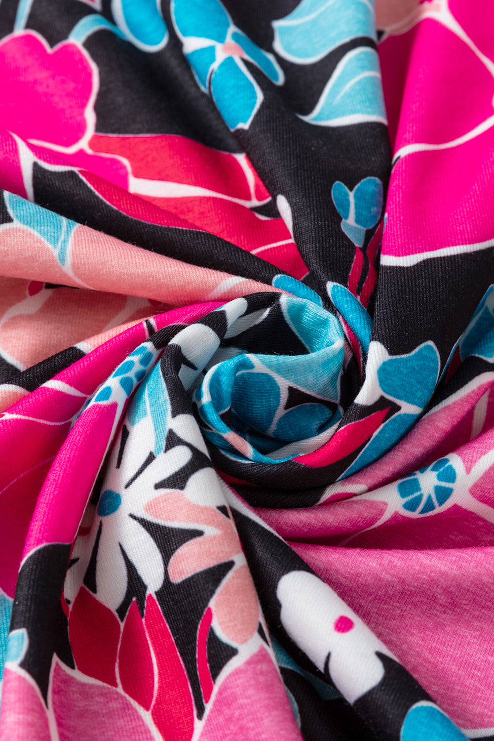 Pink Floral V Neck Roll Tab Sleeve Blouse
