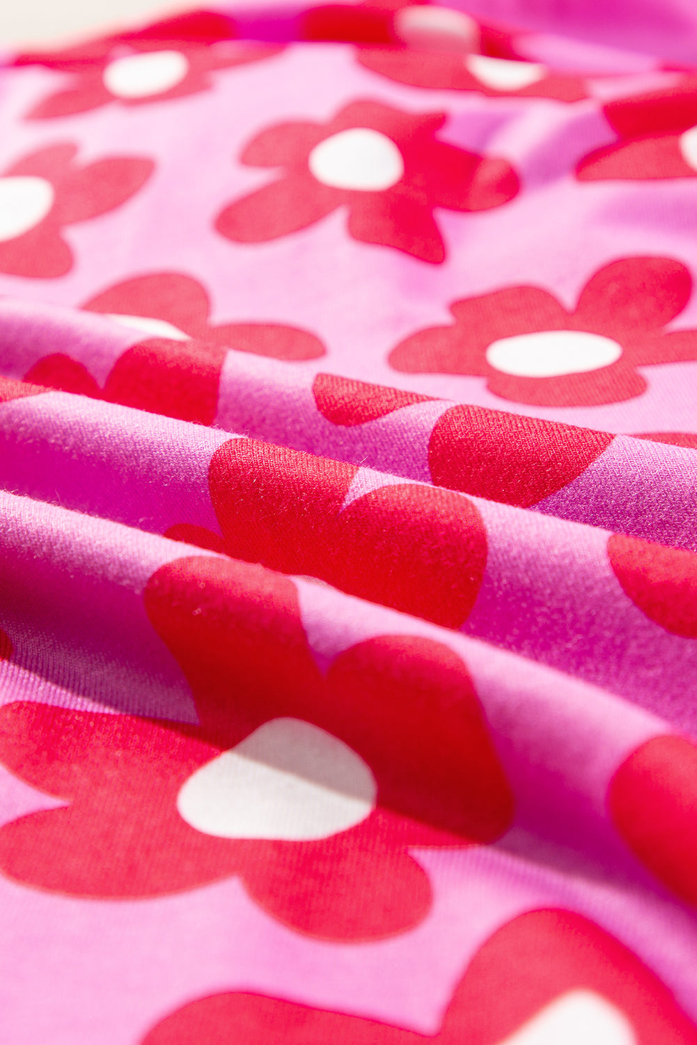 Pink Flower Print Long Sleeve Shirt Shorts Pajamas Set