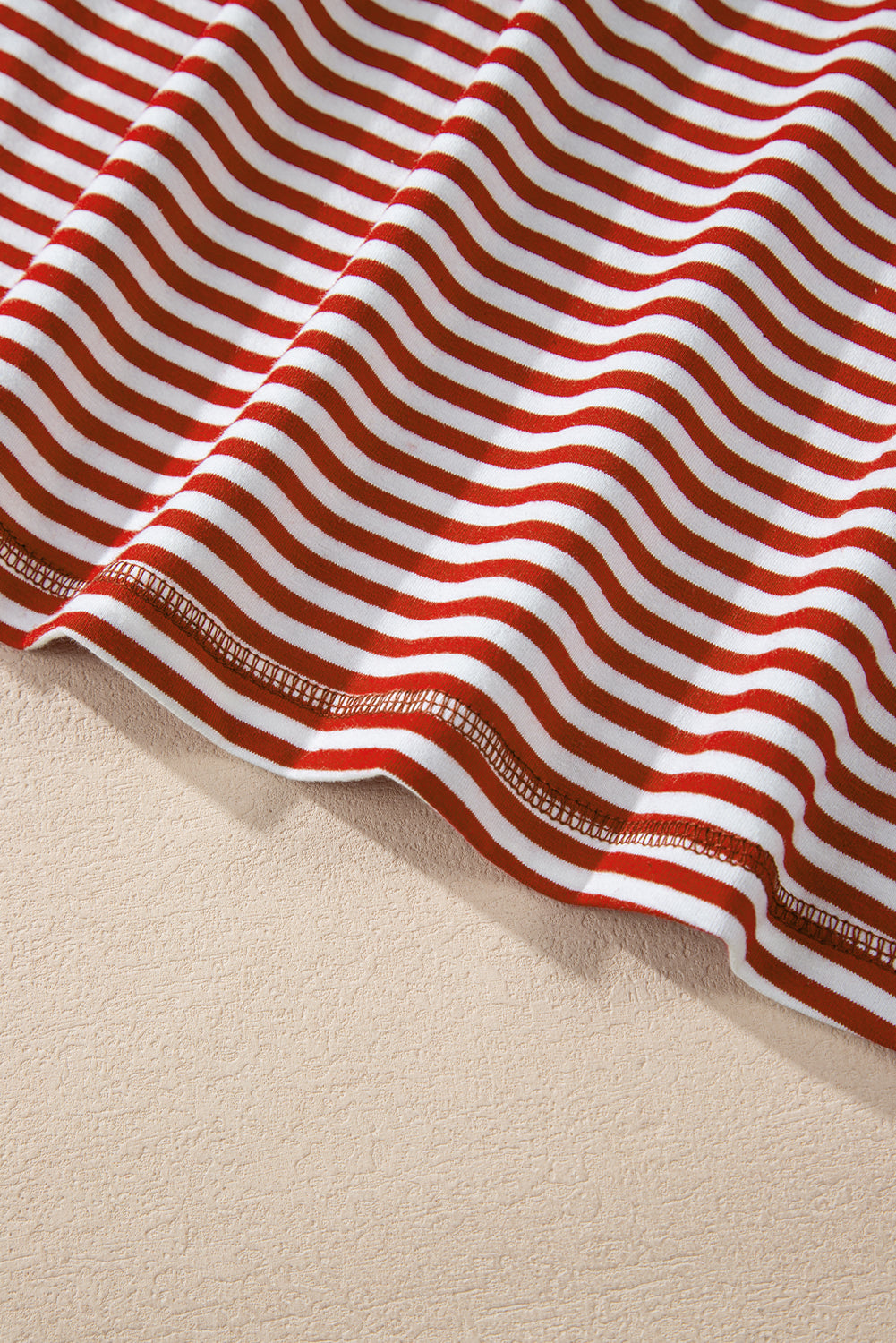 Red Stripe Buttoned V Neck Top and Knotted Waist Pants Lounge Set