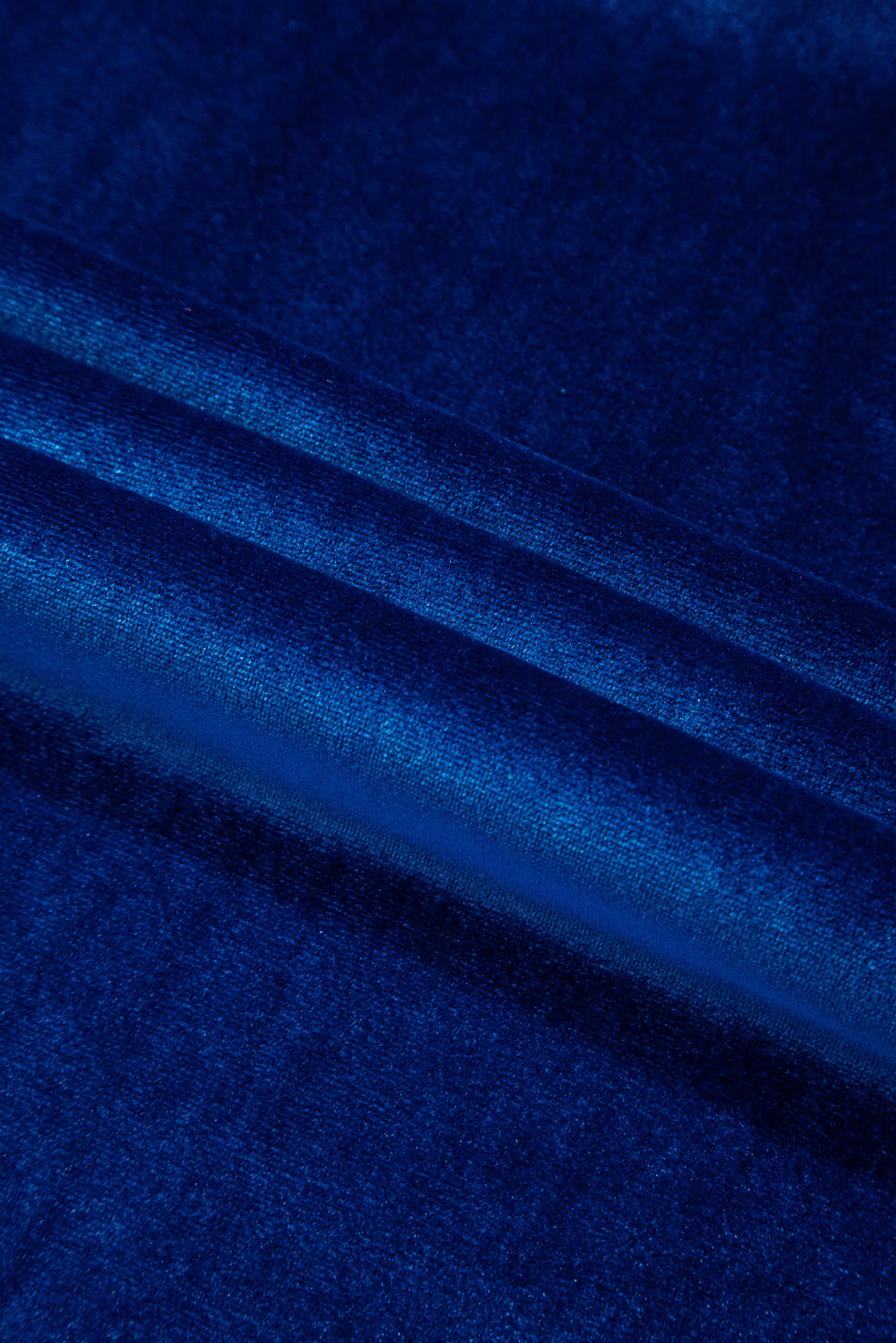 Sail Blue Velvet Ruched Short Sleeve Pocketed Mini Dress