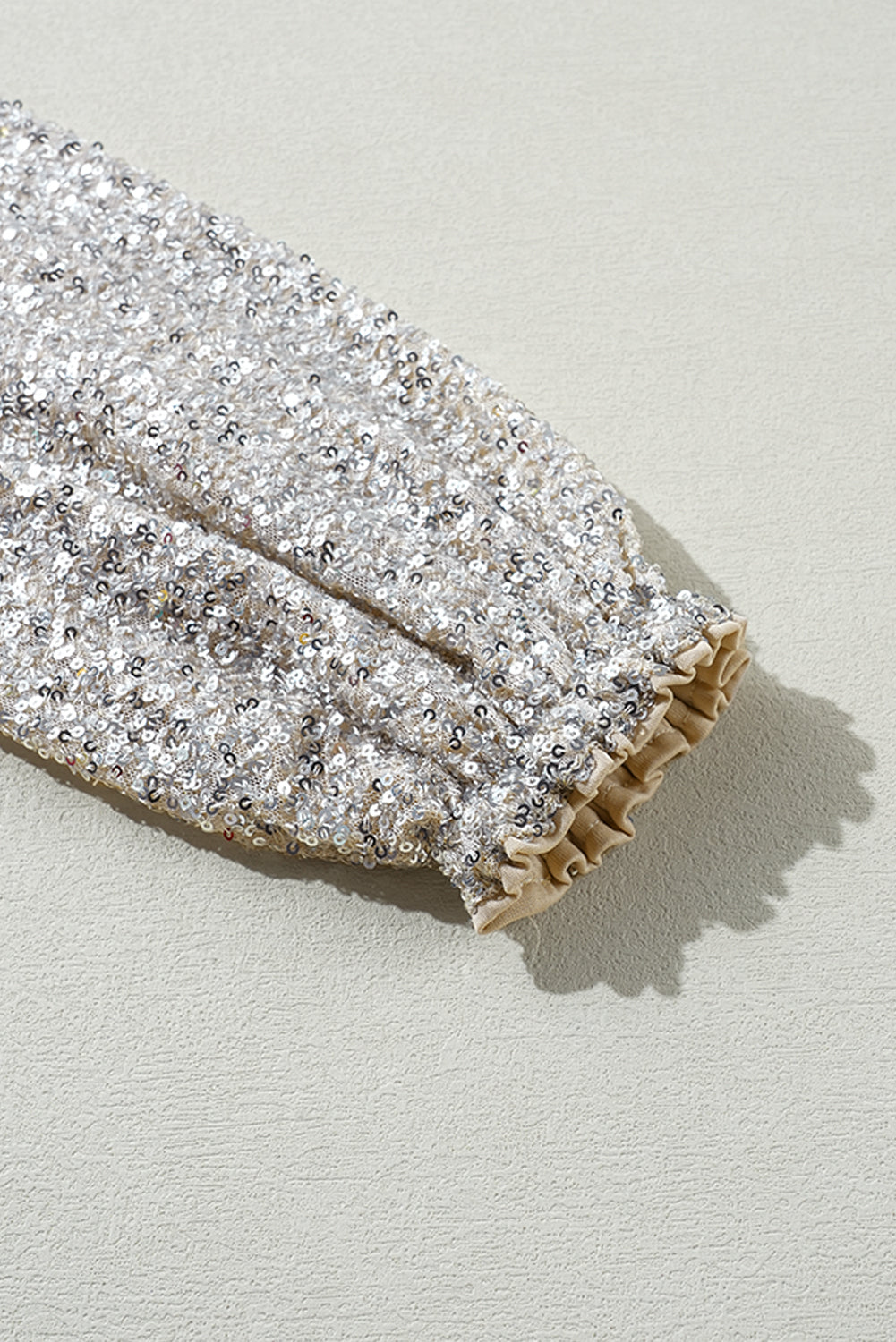 Silvery Sequin Puff Sleeve Cutout Back Blouse