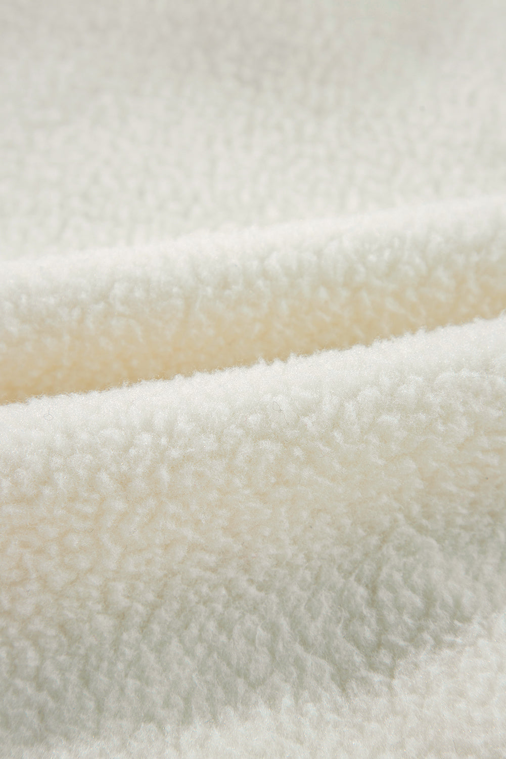 White Fleece Placket Turn-down Collar Drop Shoulder Sweatshirt