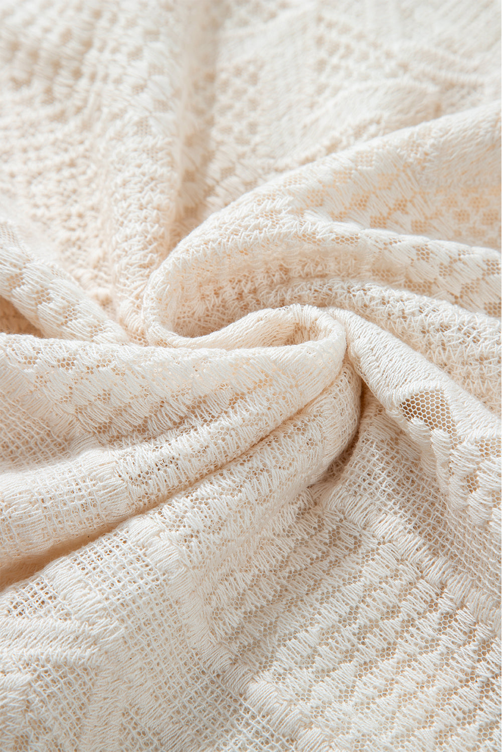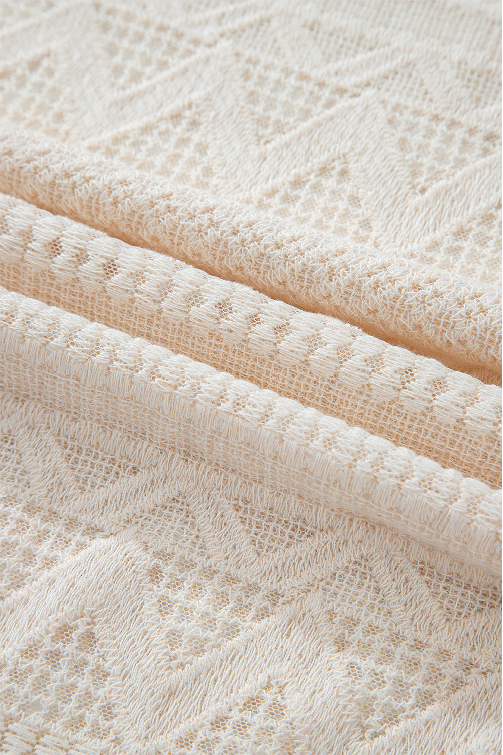 White Geometric Lace Buttoned Decor Long Sleeve Blouse