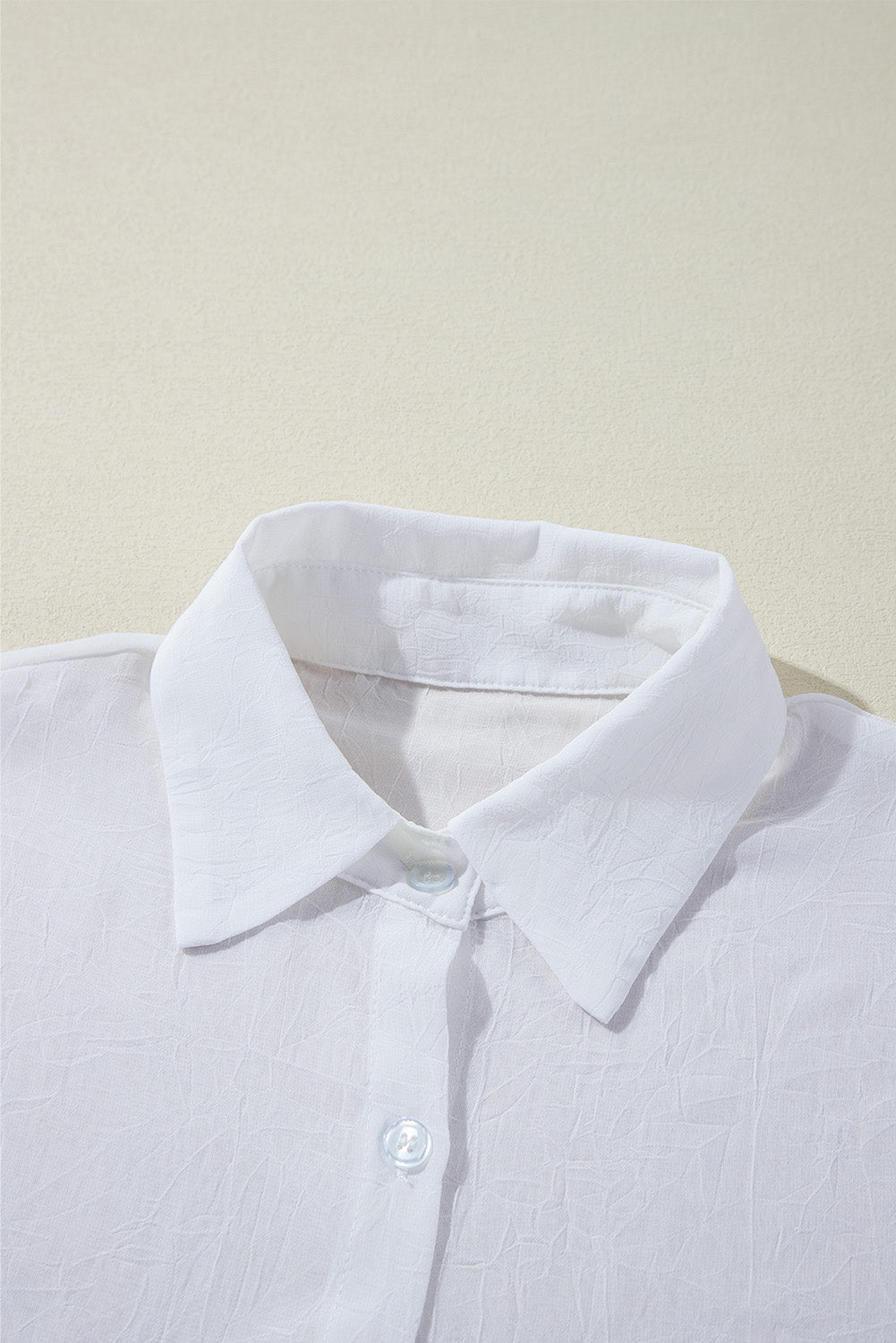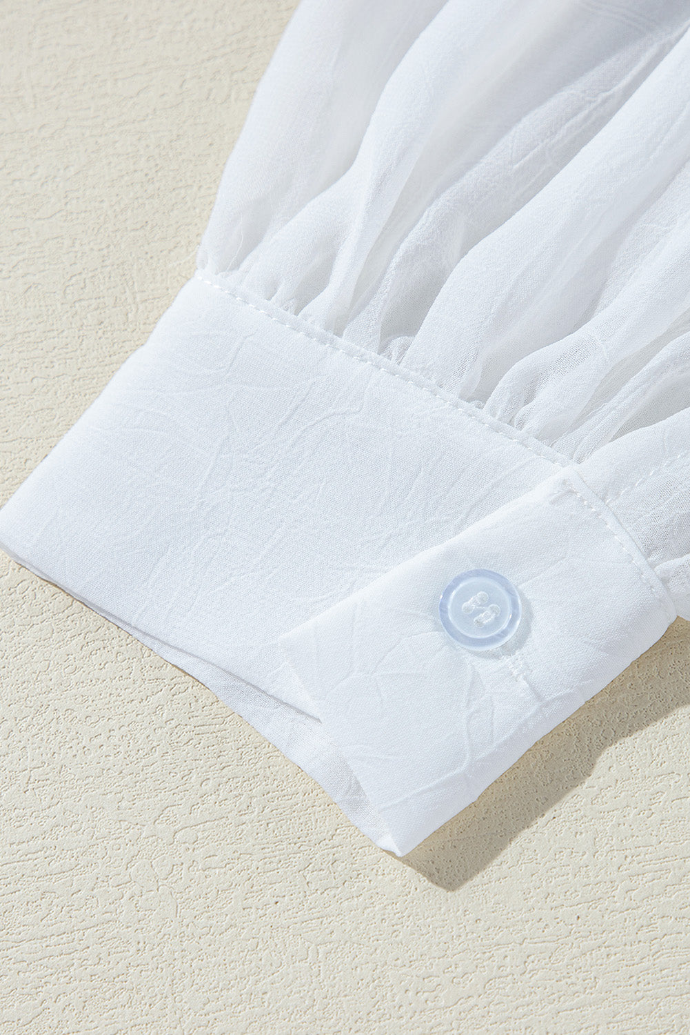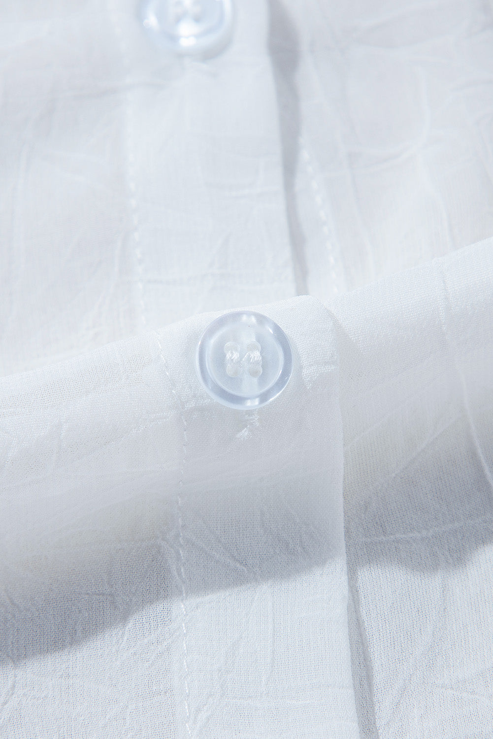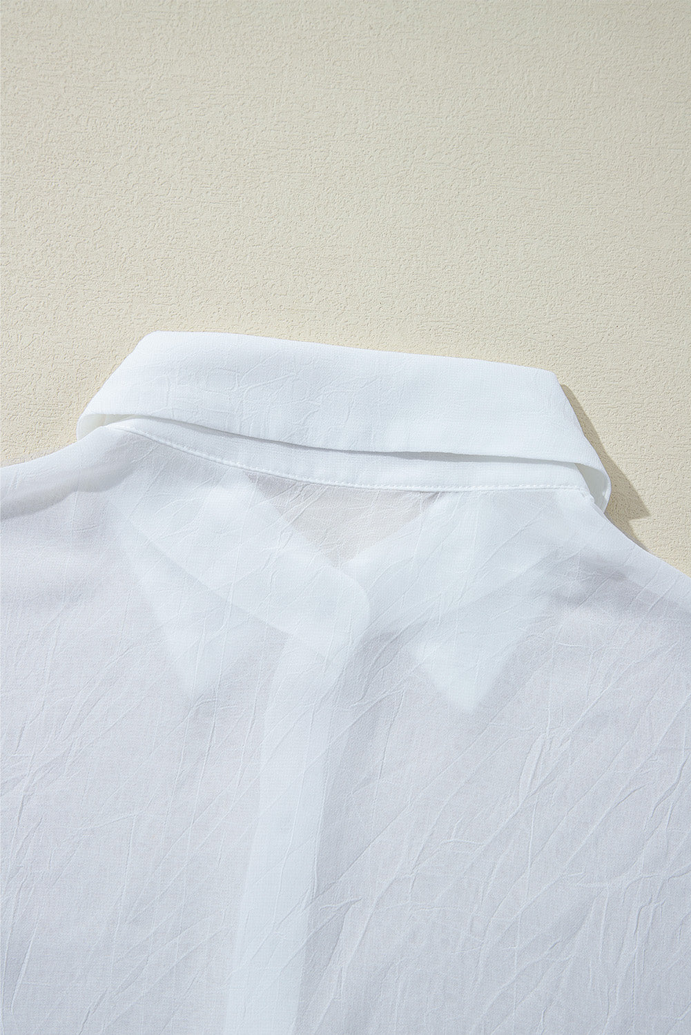 White Solid Knotted Front Loose Fit Sheer Shirt