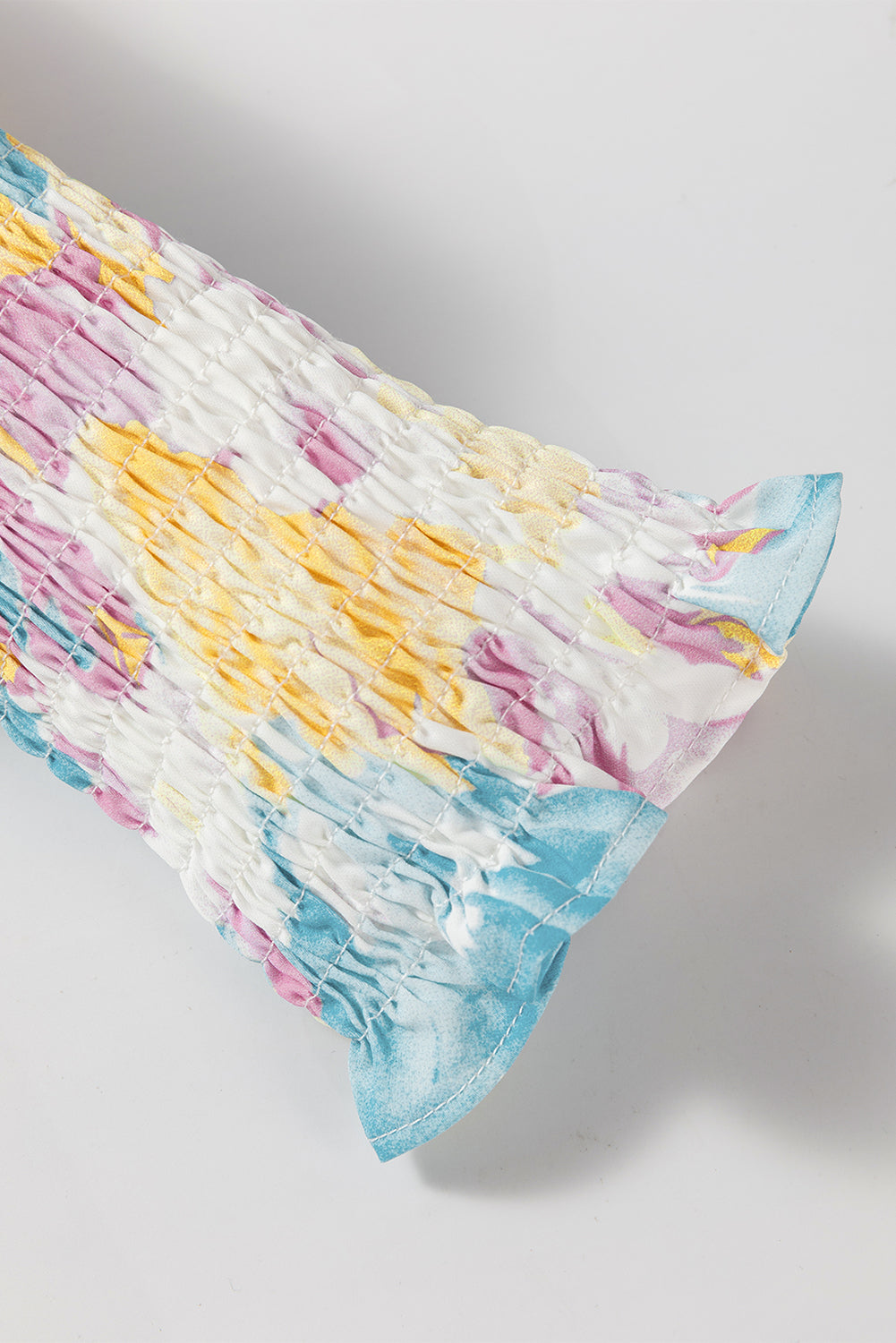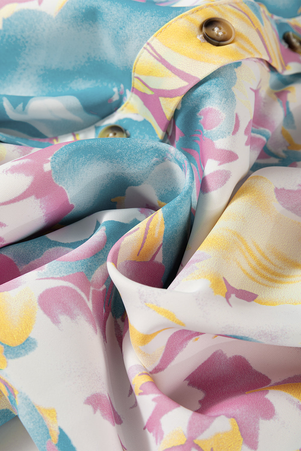 Yellow Floral Allover Print Shirred Cuff Oversized Shirt